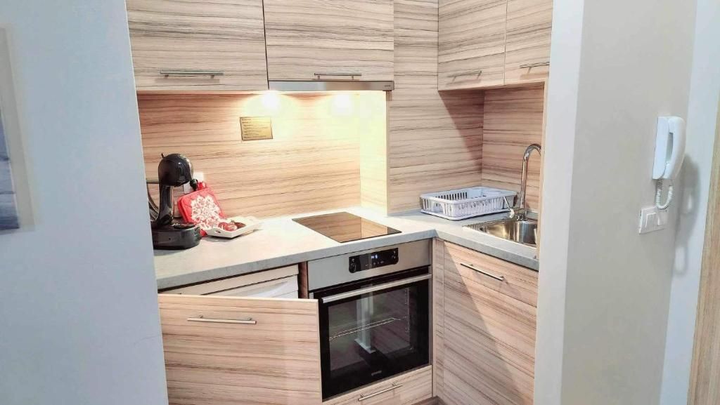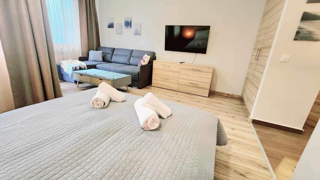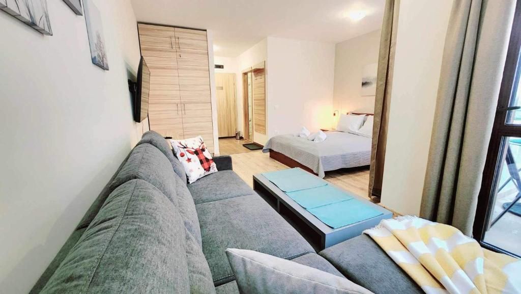 Студиото разполага с всички удобства за комфортен престой: спалня, разтегателен диван, оборудван кухненски бокс, тераса с прекрасен изглед и санитарен възел.