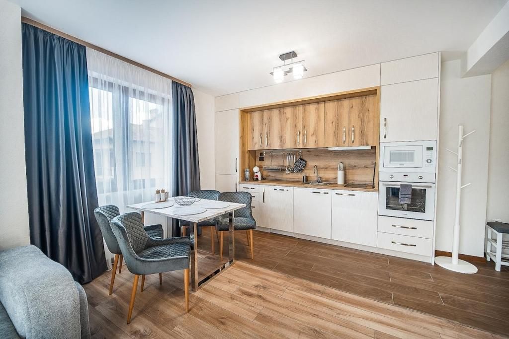 Обзаведено с голямо внимание към всеки детайл и дизайнерски щрих, студиото се намира в новопостроена сграда в покрайнините на центъра на Банско и предлага: