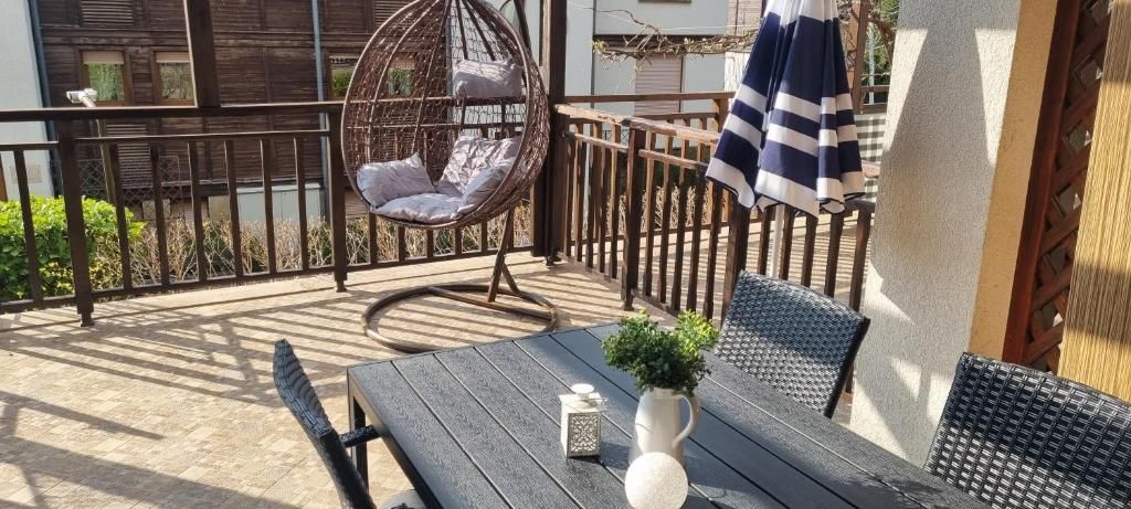 Един от най-добрите плажове в България, Златна рибка, е само на 5 минути пеша. Местоположението на апартамента е в тихата част (без шум от улично движение или басейни), но в близост до главния вход, централния басейн и моста към плажа.