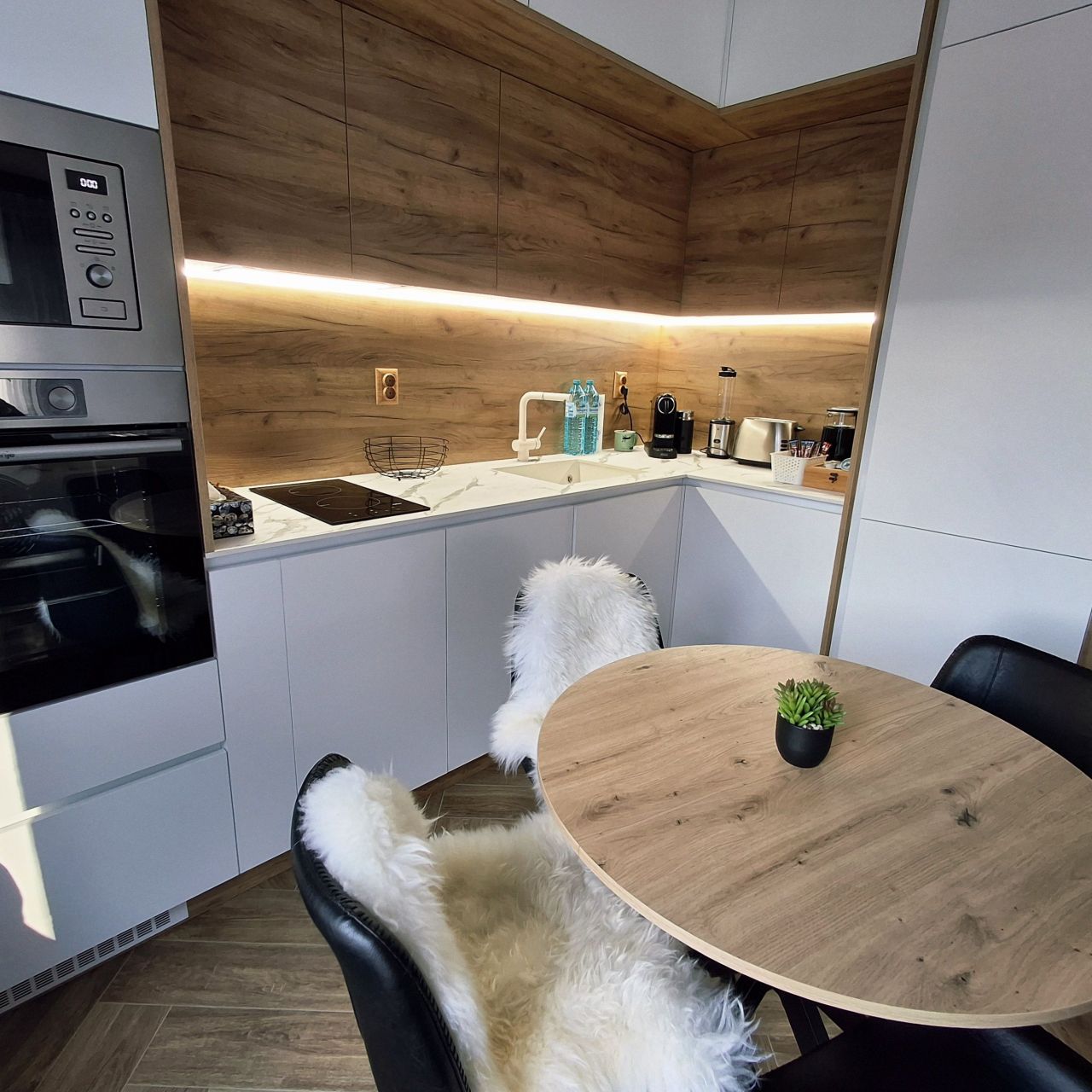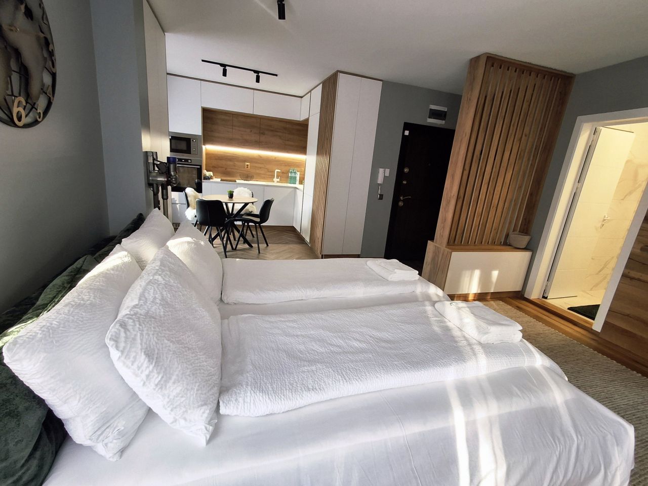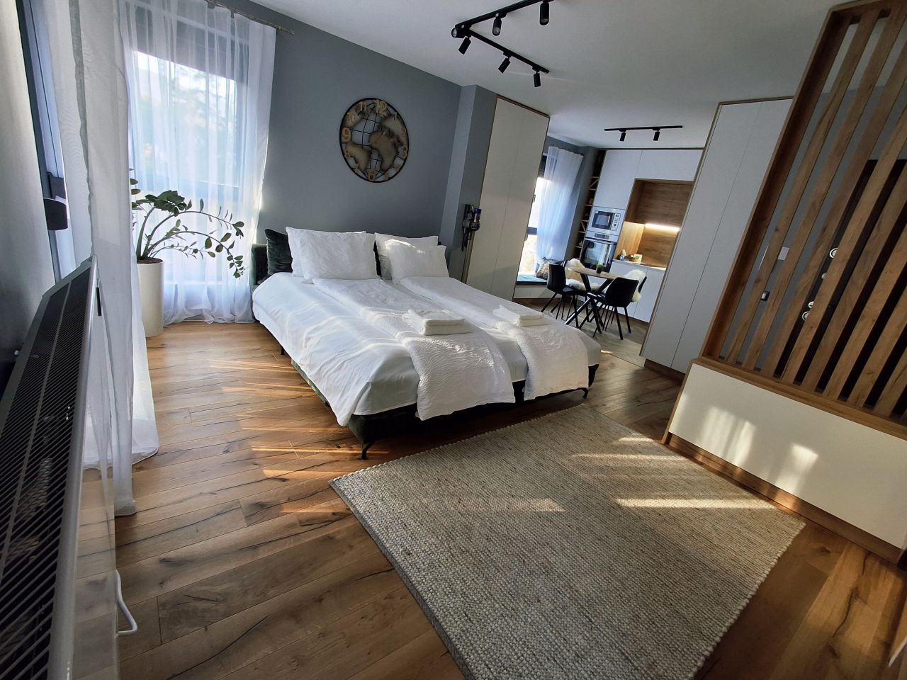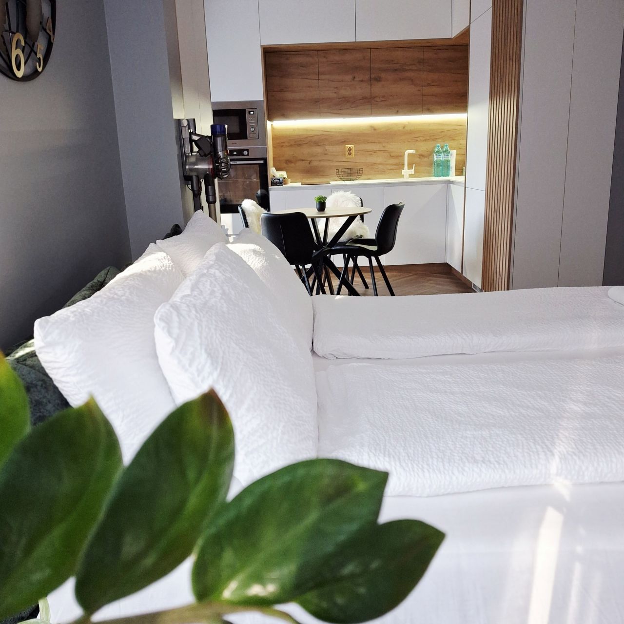 Апартаментът разполага с голямо и удобно двойно легло, напълно оборудвана кухня, подходяща за по-кратък или по-дълъг престой, както и малка тераса, идеална за сутрешно кафе или вечерна почивка. Стилната обстановка и новото строителство гарантират уют и удобство през целия престой. Студио Форест е подходящ избор за гости, търсещи тишина, романтичен уикенд или бягство от градския шум сред чистия въздух, минералните извори и магията на Родопите.