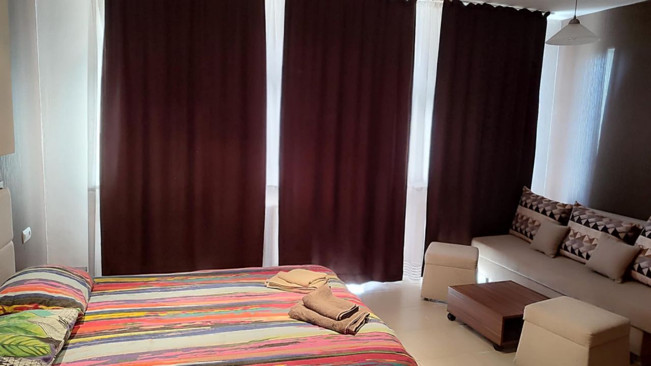 Предлагаме ви уютно и просторно ваканционно студио (50 кв. м), разположено в основната сграда, където са и всички съоръжения и рецепцията на комплекса.