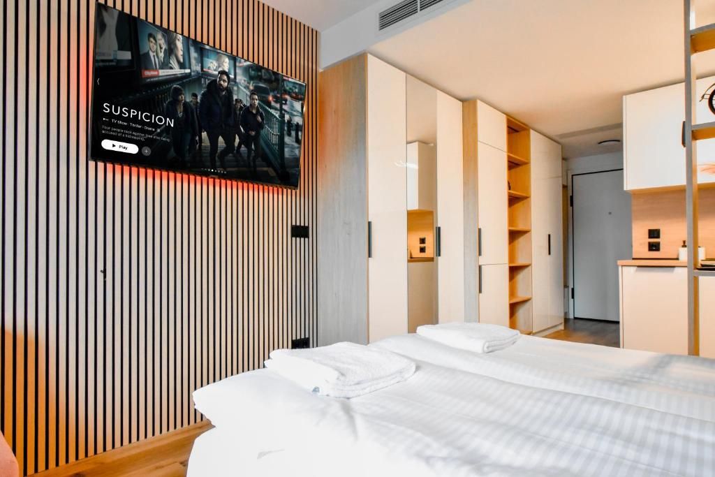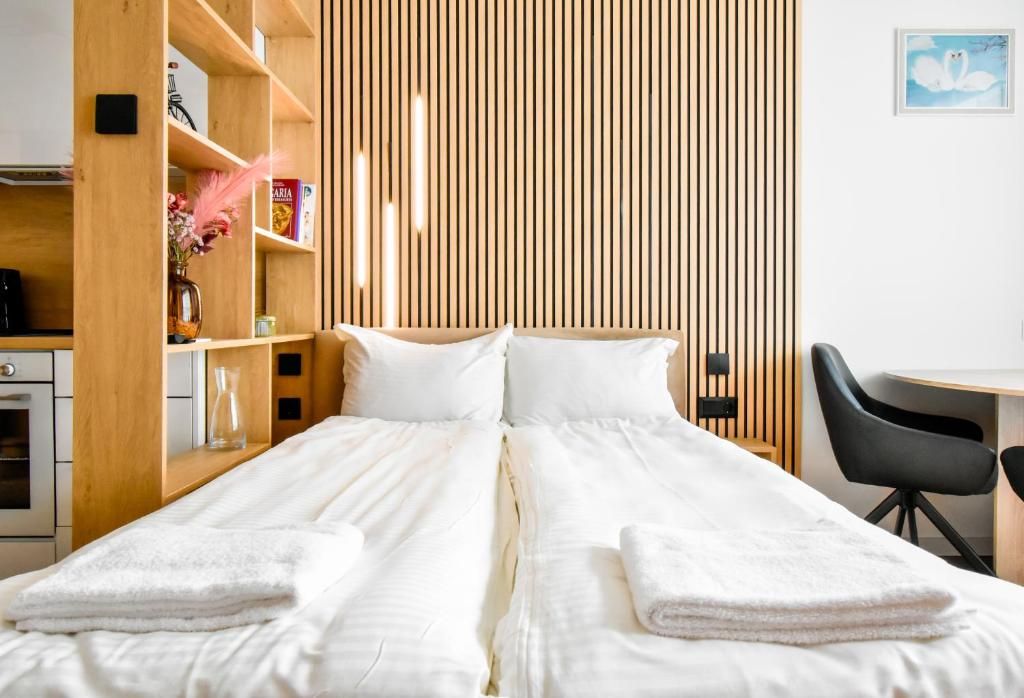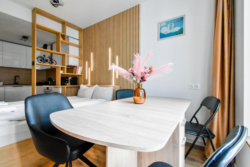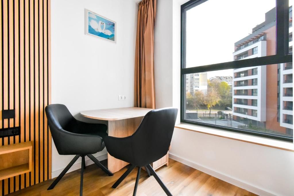 Кокетно, модерно и функционално оборудвано студио за гости, разположено на на 4-ти етаж, достъпен с асансьор.