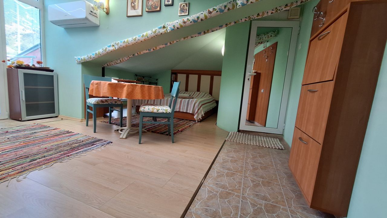 Студиото се намира на 4-ти етаж без асансьор – подходящо за активни и мобилни гости.