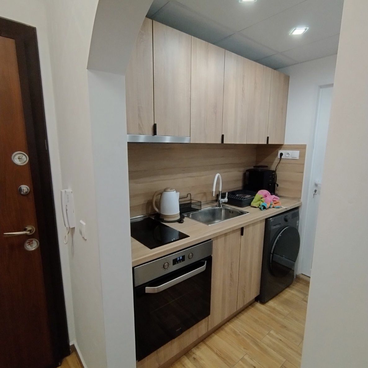 Апартаментът разполага със спалня, разтегателен диван, гардероб, кухненска маса със столове, климатик, телевизор с всички програми и Wi-Fi. Кухнята е оборудвана с печка с котлони, хладилник, кафе машина (с комплимент кафе), електрическа кана и всички необходими прибори. На разположение са още пералня със сушилня, сешоар, ютия и дъска за гладене. Осигорено паркинг място като комплимент от нас!