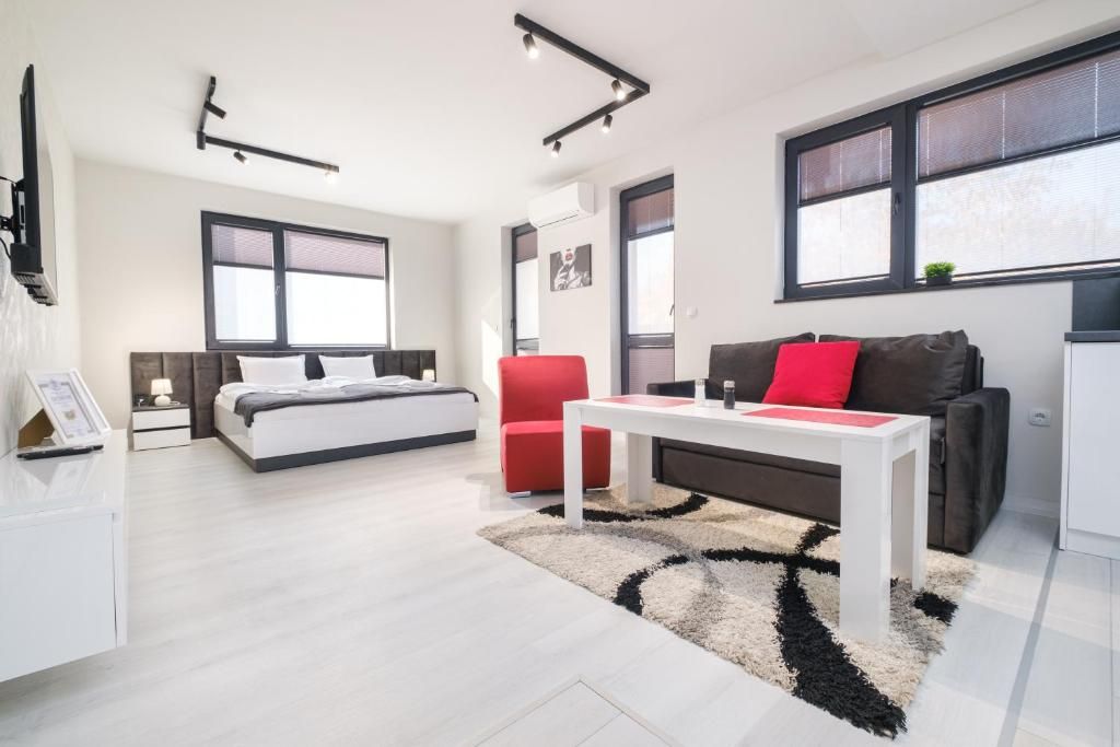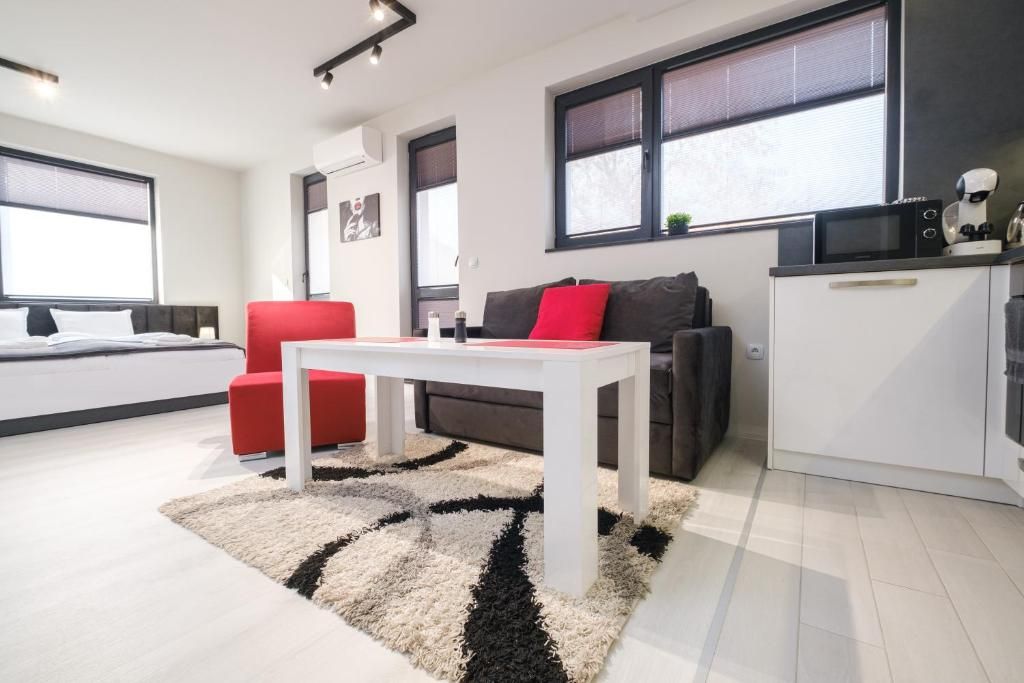 Този просторен, климатизиран апартамент се простира на 50 м² и се състои от едно общо помещение, в което има голямо двойно легло, диван, маса за хранене и напълно оборудван кухненски бокс. Стилният дизайн включва модерни мебели, 1 телевизор с плосък екран със сателитни канали и безплатен Wi-Fi.