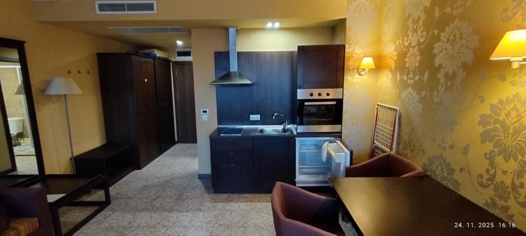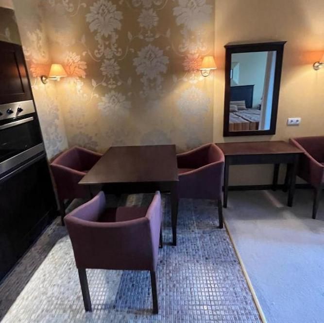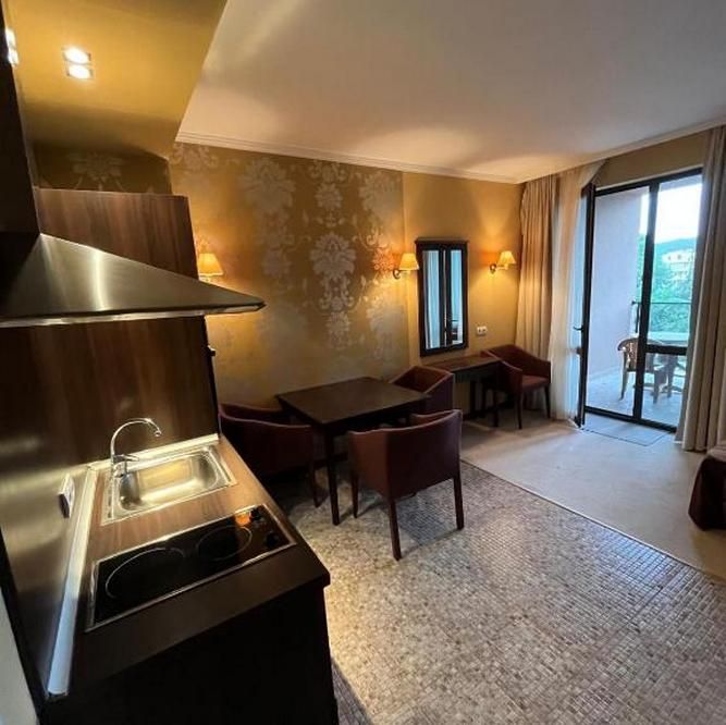- оборудвана кухня (котлони, кафемашина, ел. кана за гореща вода, хладилник, прибори посуда),