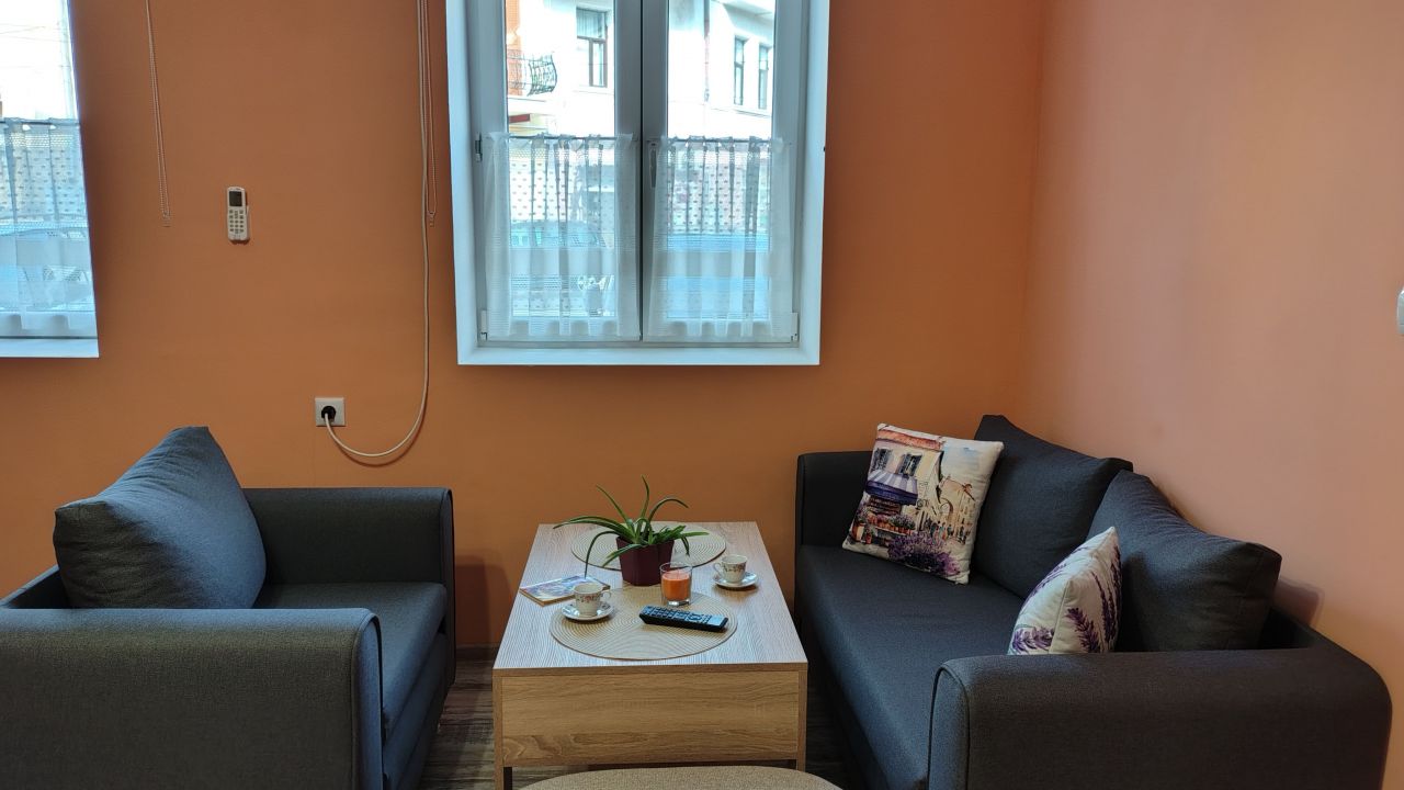 Зона за отдих – мека мебел, кафе маса и телевизор за спокойни вечери.