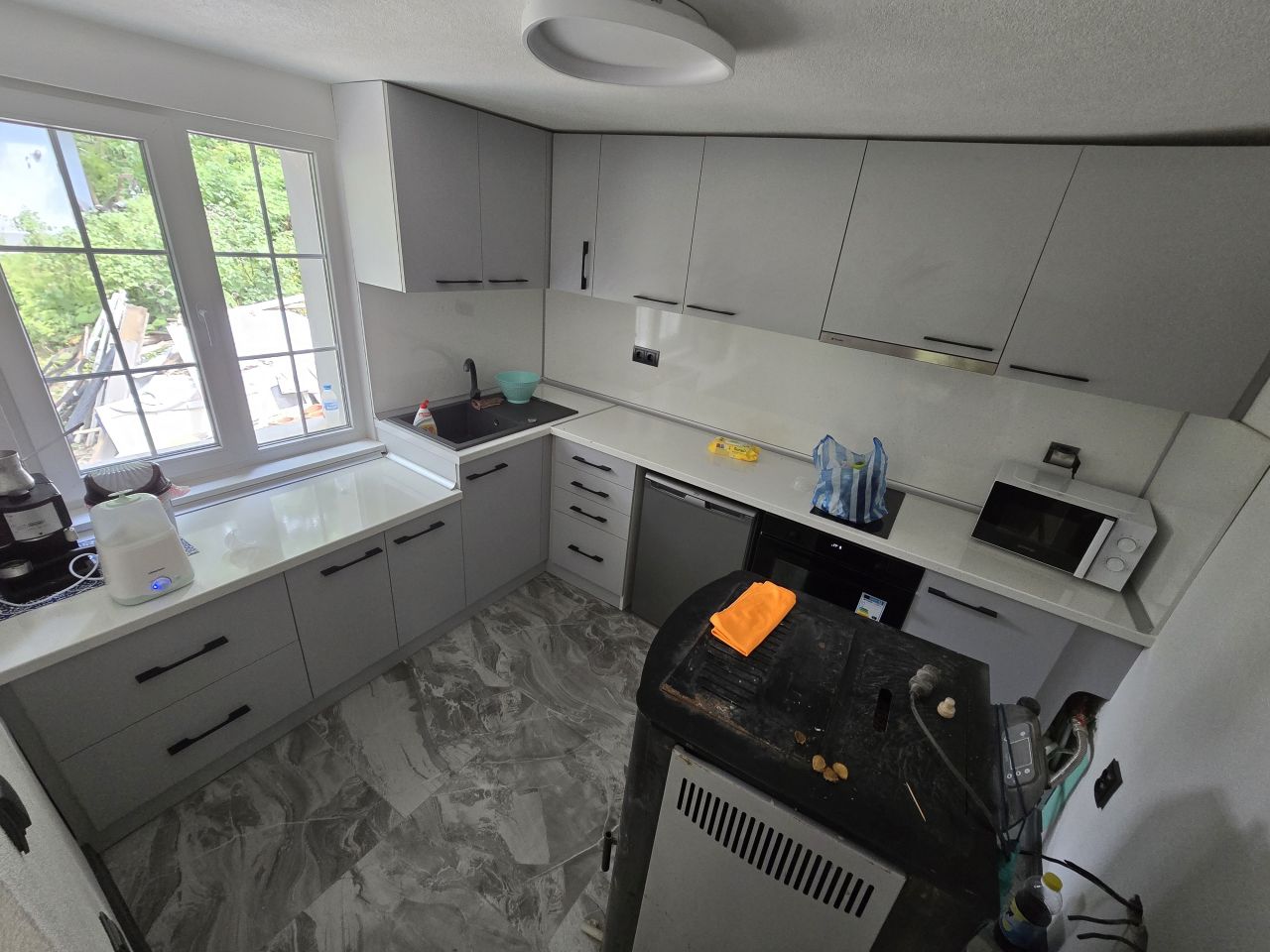 Кухнята ни е напълно оборудвана с фурна, котлони, хладилник, съдомиялна машина, кафе машина и кана за гореща вода.