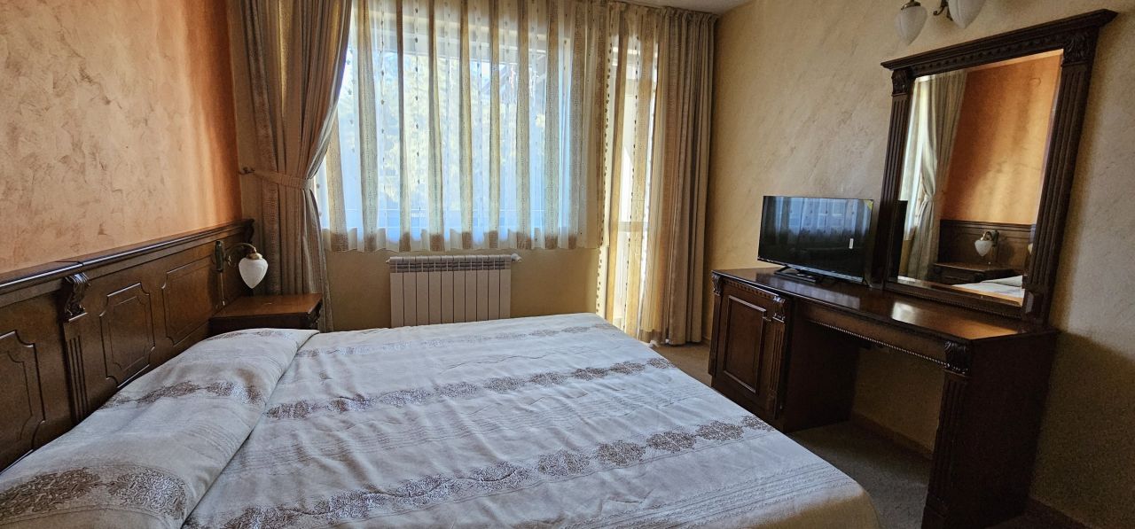 - Самостоятелна алпийска къща с 4 броя мезонети, всеки от който има хол, 2 двойни стаи и санитарен възел;