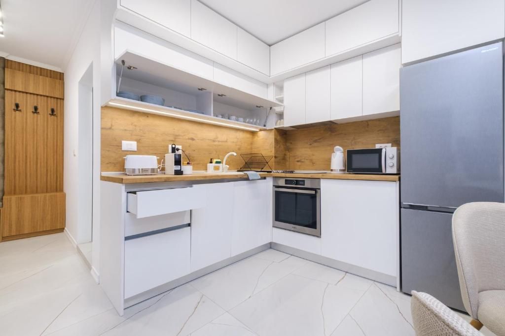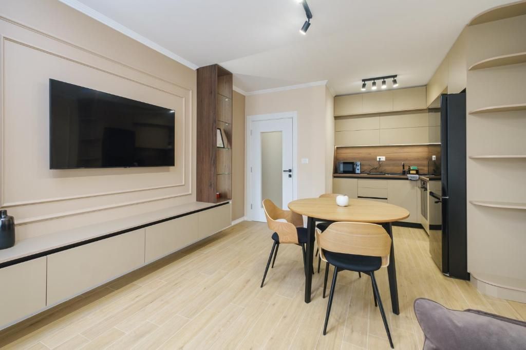 Всеки апартамент разполага с всекидневна с кът за хранене, напълно оборудван кухненски бокс, телевизор с плосък екран, климатик, спалня, работно място и високоскоростен Wi-Fi, санитарен възел и тераса.