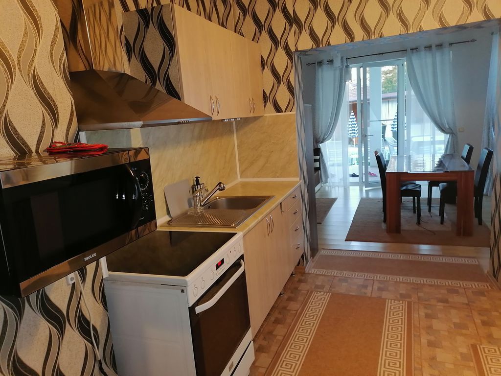 Къща 1 разполага с 3 двойни стаи с двойни легла, хол с разтегателен диван, оборудвана кухня и 2 санитарни възела.