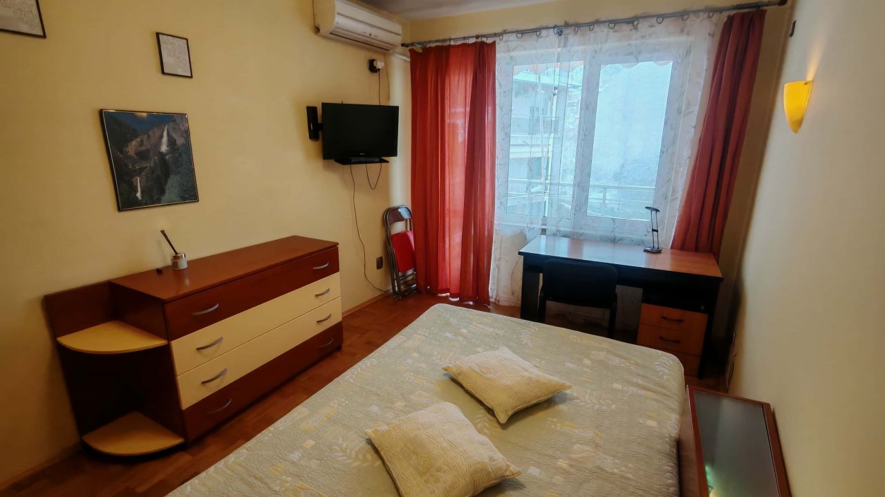 Апартаментът разполага с 2 стаи. Спалня, с размери 140см/190см, гардероб и скрин, телевизор с цифрова ефирна телевизия и климатик. Голяма всекидневна с разтегателен ъгъл, който е много удобен за спане и напълно оборудвана кухненска част. Има голям смарт телевизор, Wi Fi и аудио система.