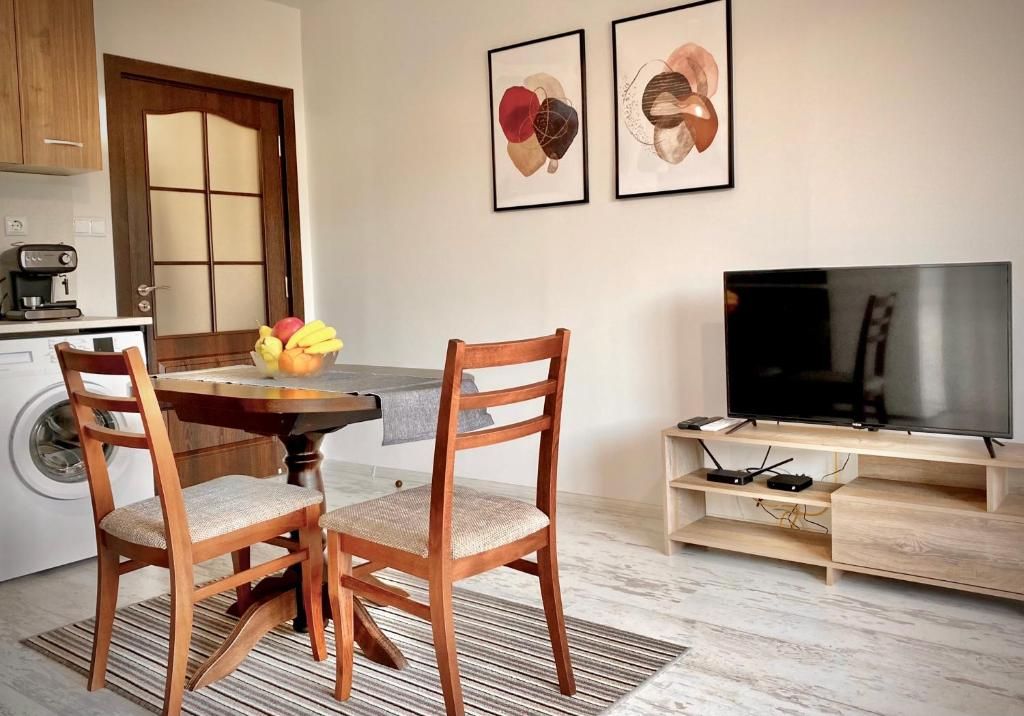 Апартаментът разполага със спалня с голямо двойно легло, всекидневна с разтегателен диван и напълно оборудвана кухня с кът за хранене.