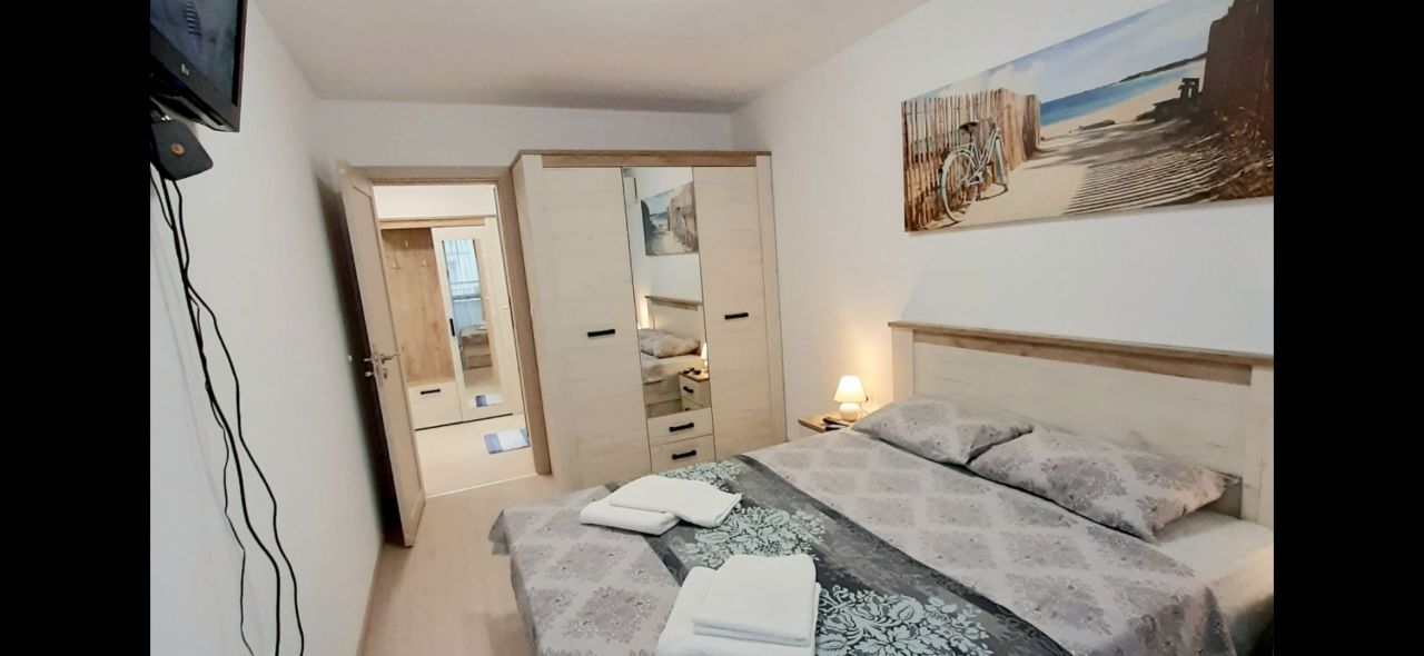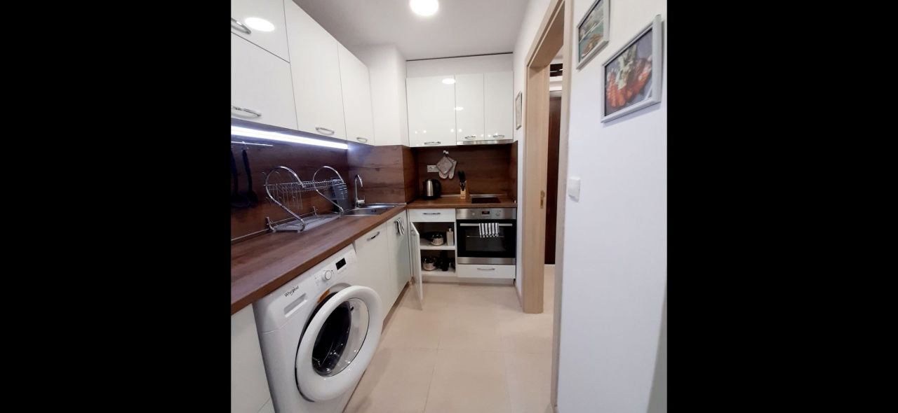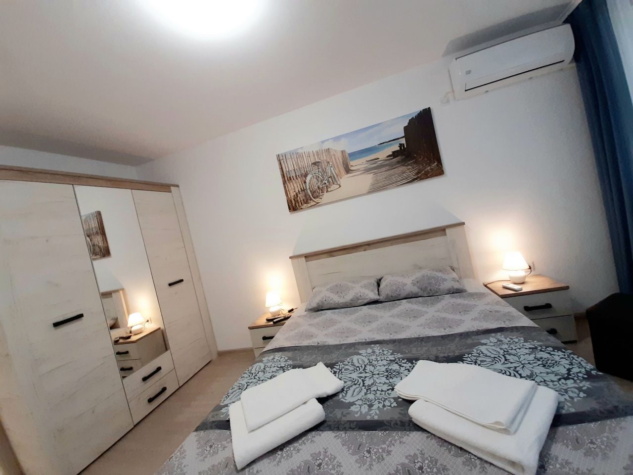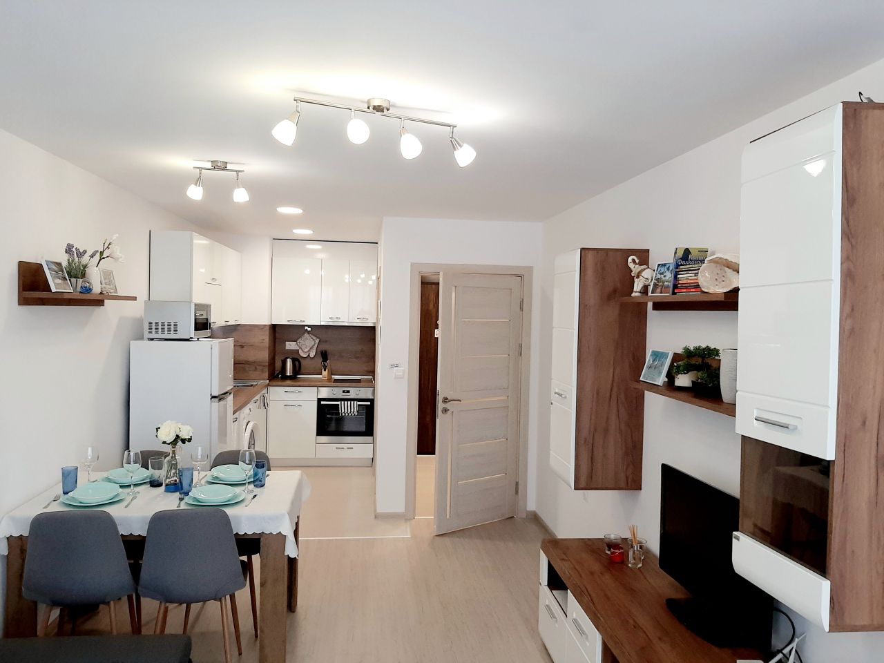 Апартаментът се състои от всекидневна с напълно оборудвана кухня, където е разположен разтегателен диван 140/200см и спалня с легло 160/200см.
