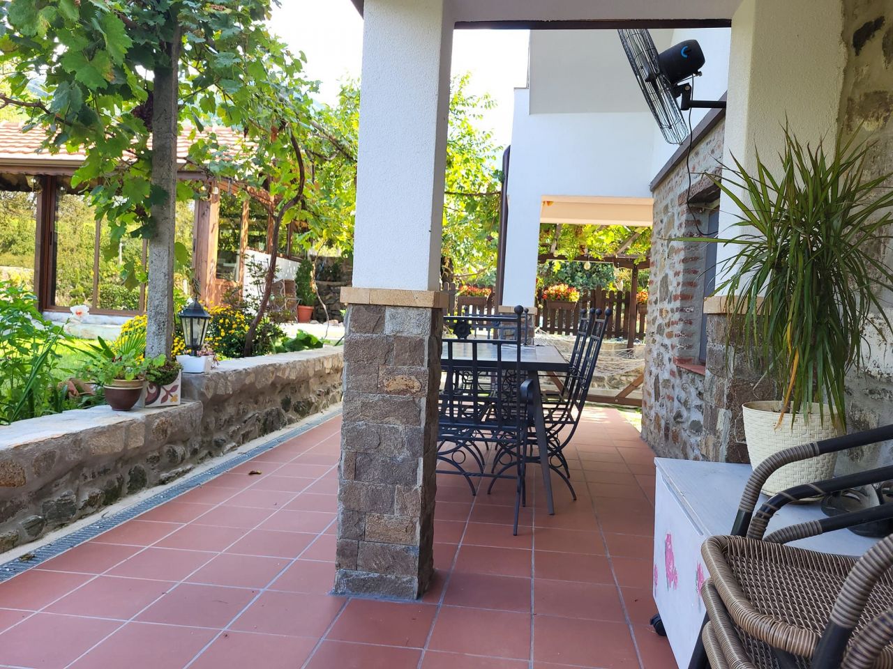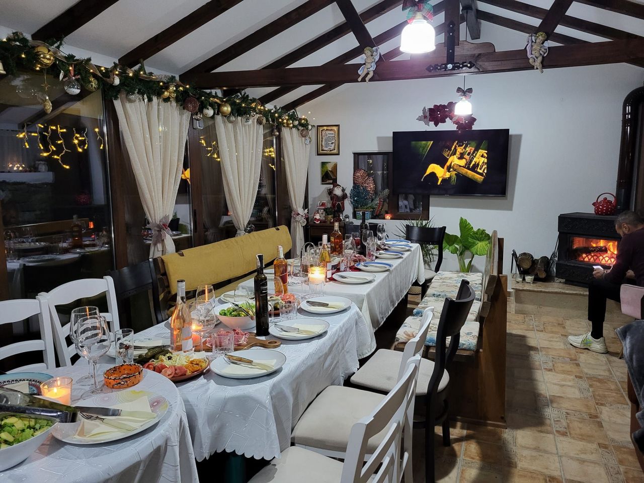 Вилата разполага с обширен двор, камина, барбекю, оборудвана кухня, телевизор, просторна механа за празненства и всички удобства за комфортен престой.