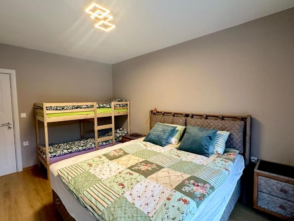 Спалня 2 – едно голямо двойно легло king size с размери 180/200 см и двуетажно легло с размери 80/200 см.