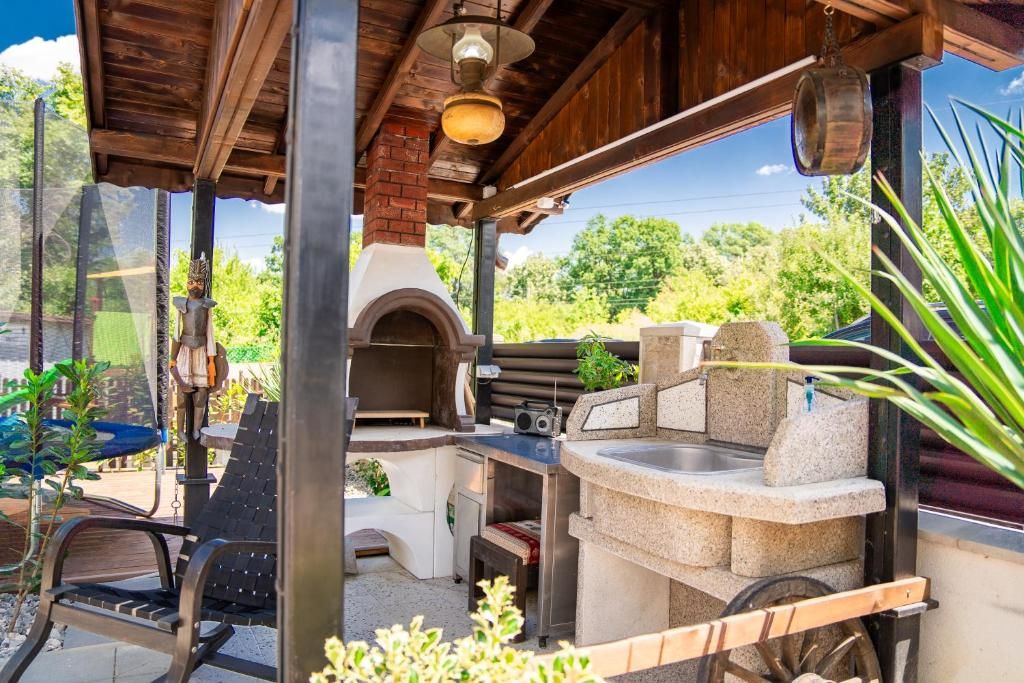Разполагаме и с отделна кухня с трапезария за събиране, с тонколона за парти, както и летен бар с барбекю и голяма маса.