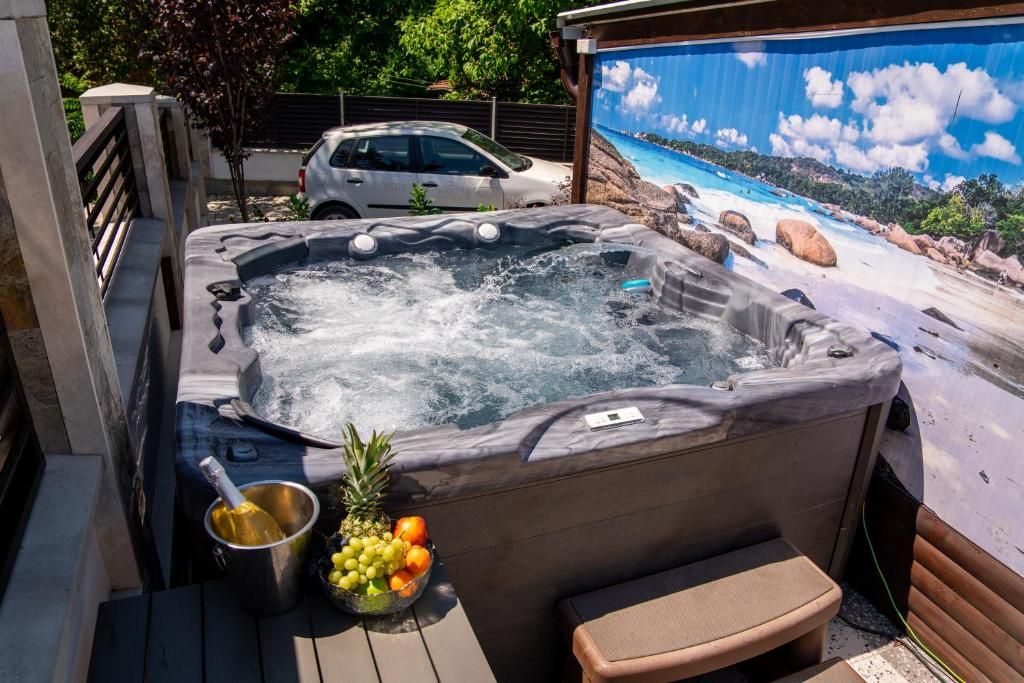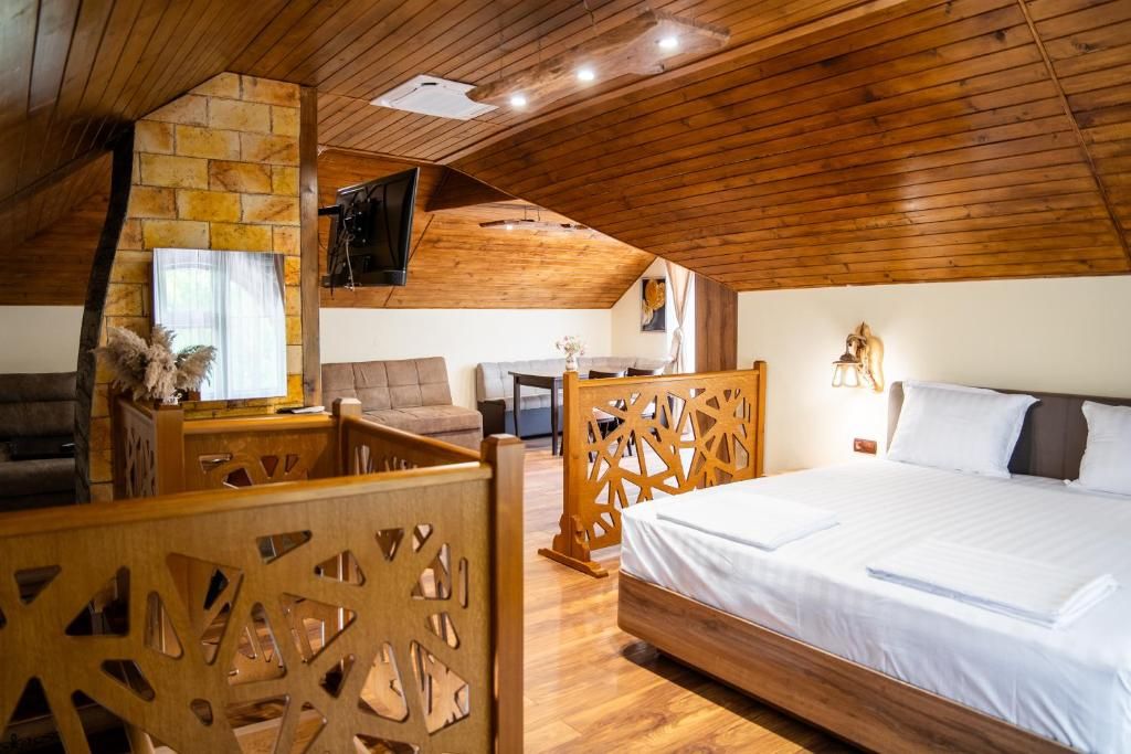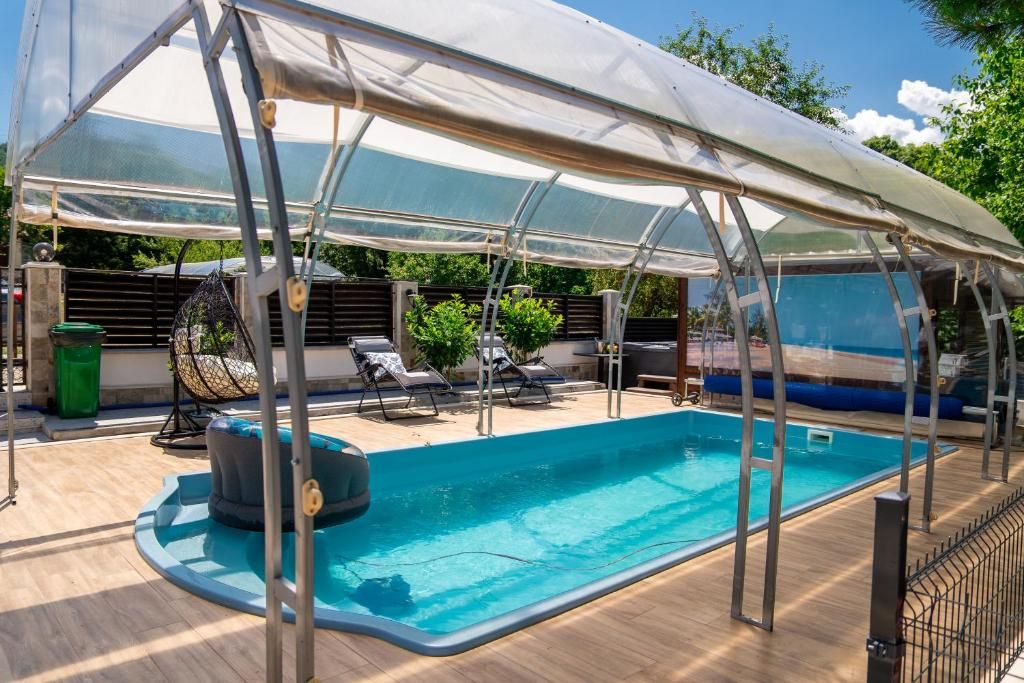 - телевизия, интернет, климатици, голям паркинг, басейн, детски кът с люлка, пързалка и батут, джакузи, масажен стол, сешоар, ютия, колона