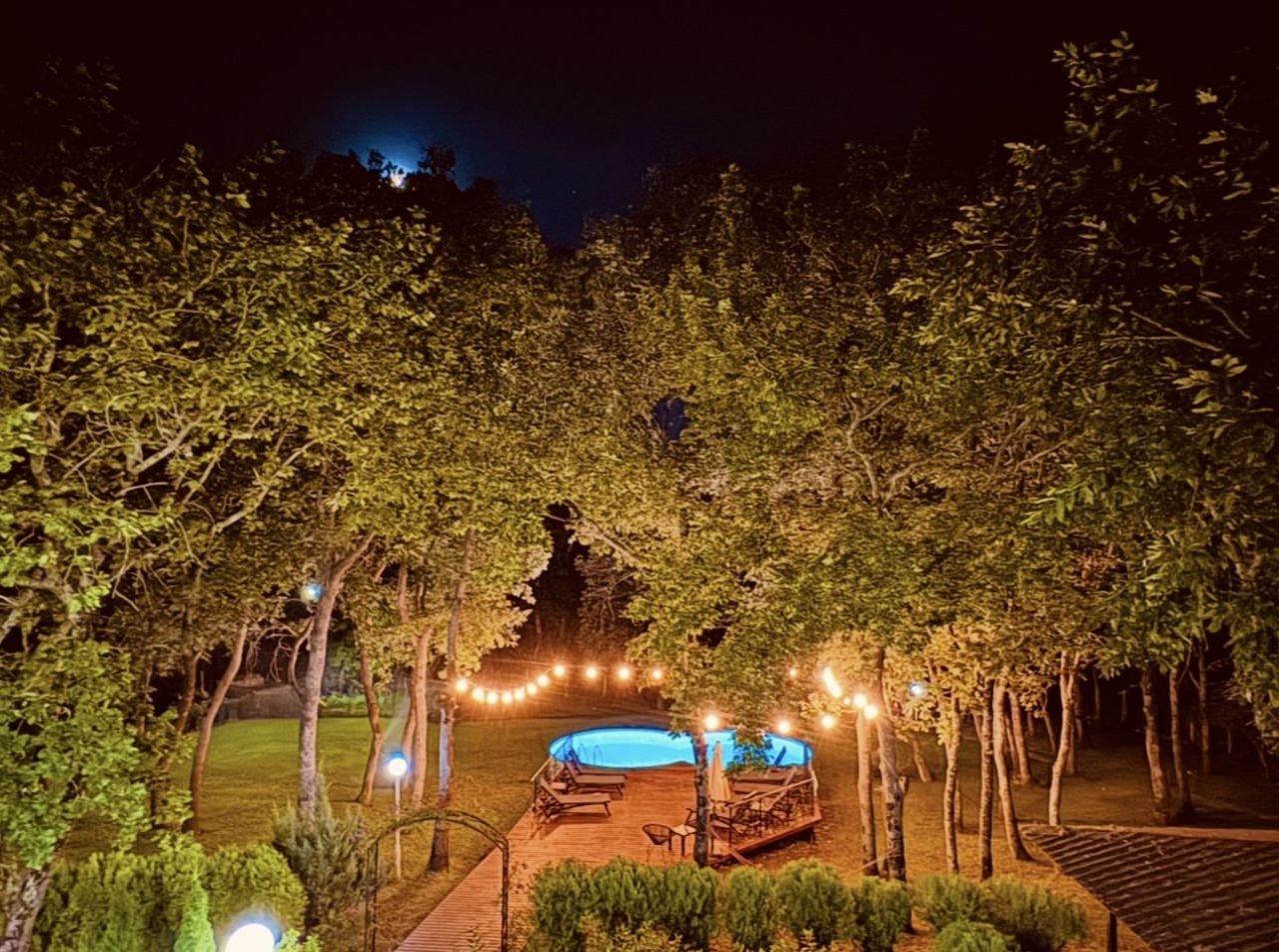 Вилата разполага с обширна градина, открит плувен басейн, детски кът, барбекю с камина и пещ, кът за хранене в градината, механа.