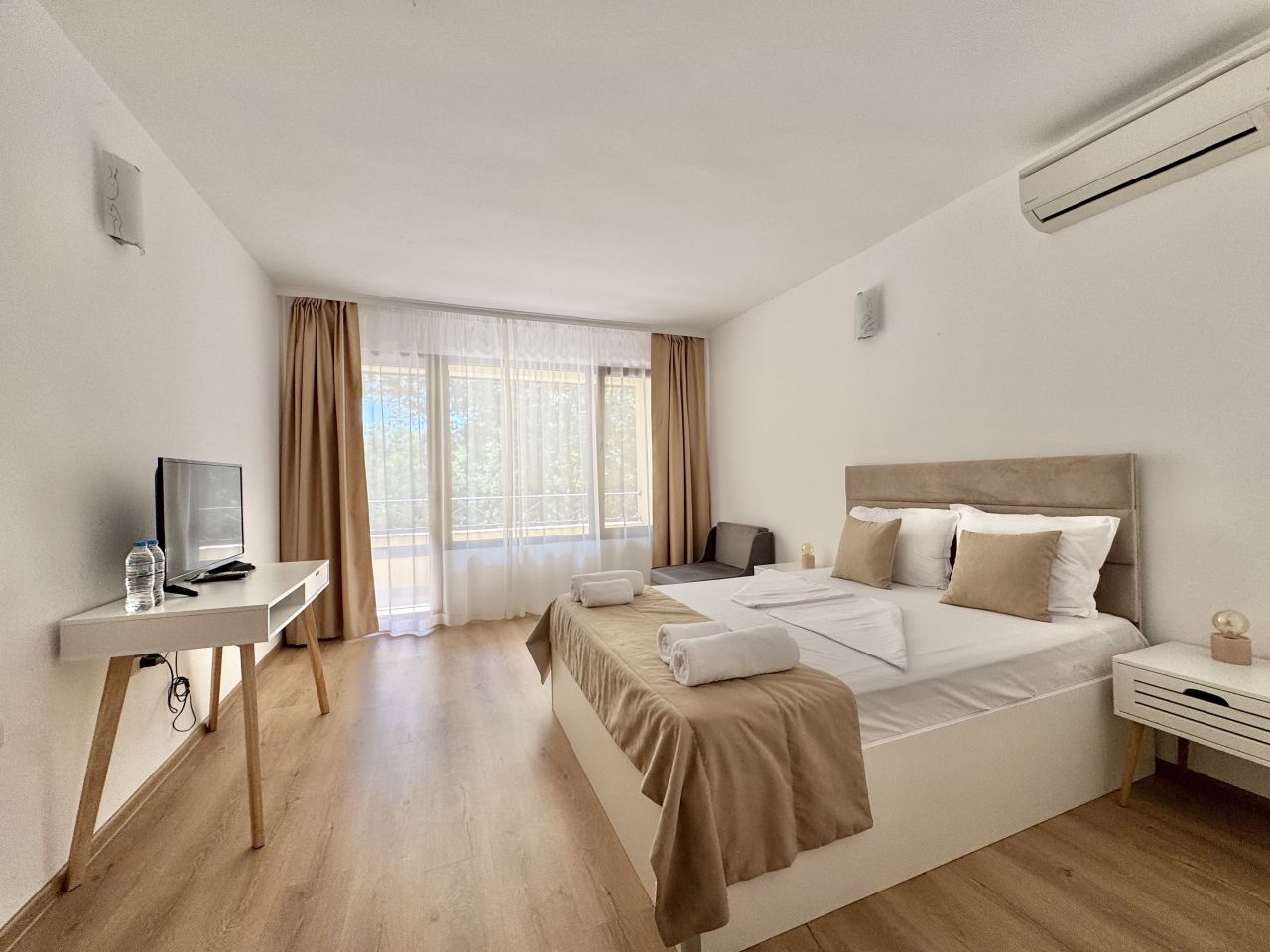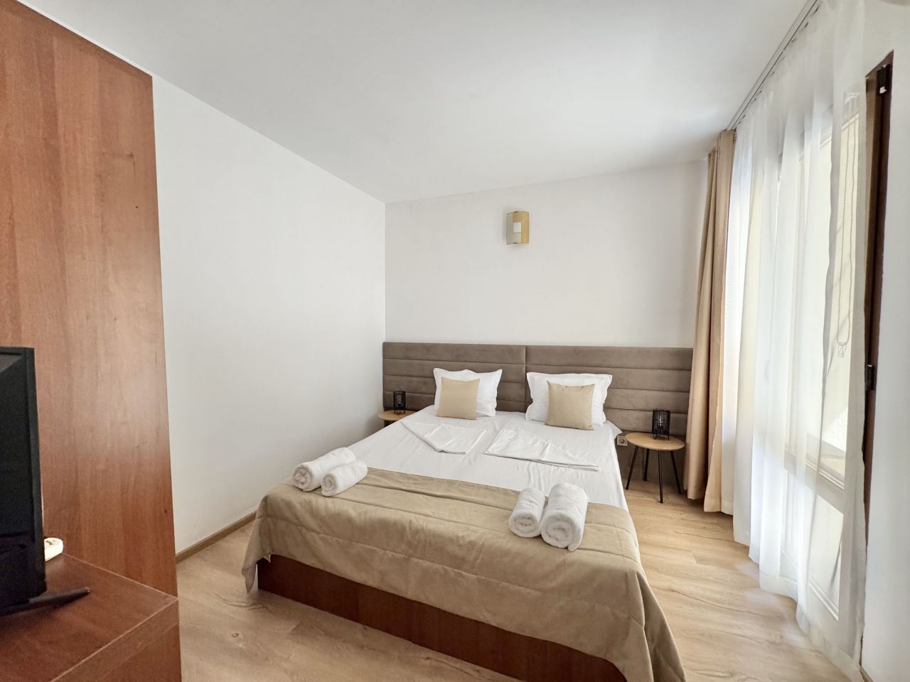 Помещенията са оборудвани с телевизор и климатик, имат балкон с изглед към басейна и гората.