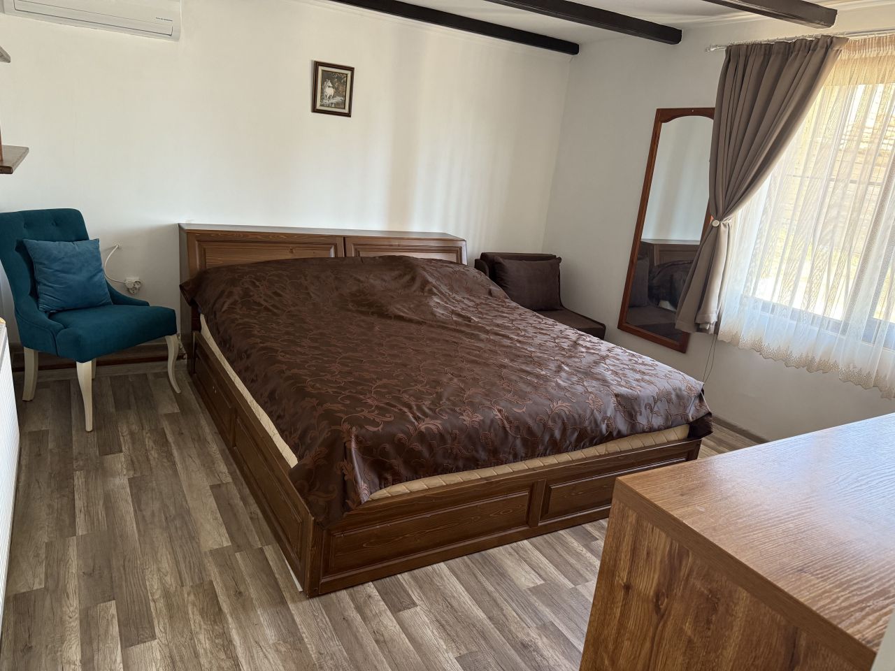 Къщата разполага с 4 просторни и уютни спални, като в три от тях има разтегателен фотьойл, подходящ за допълнително настаняване. На разположение е и допълнителна стая с разтегателен двоен диван, което прави възможно комфортното настаняване на до 13 гости.