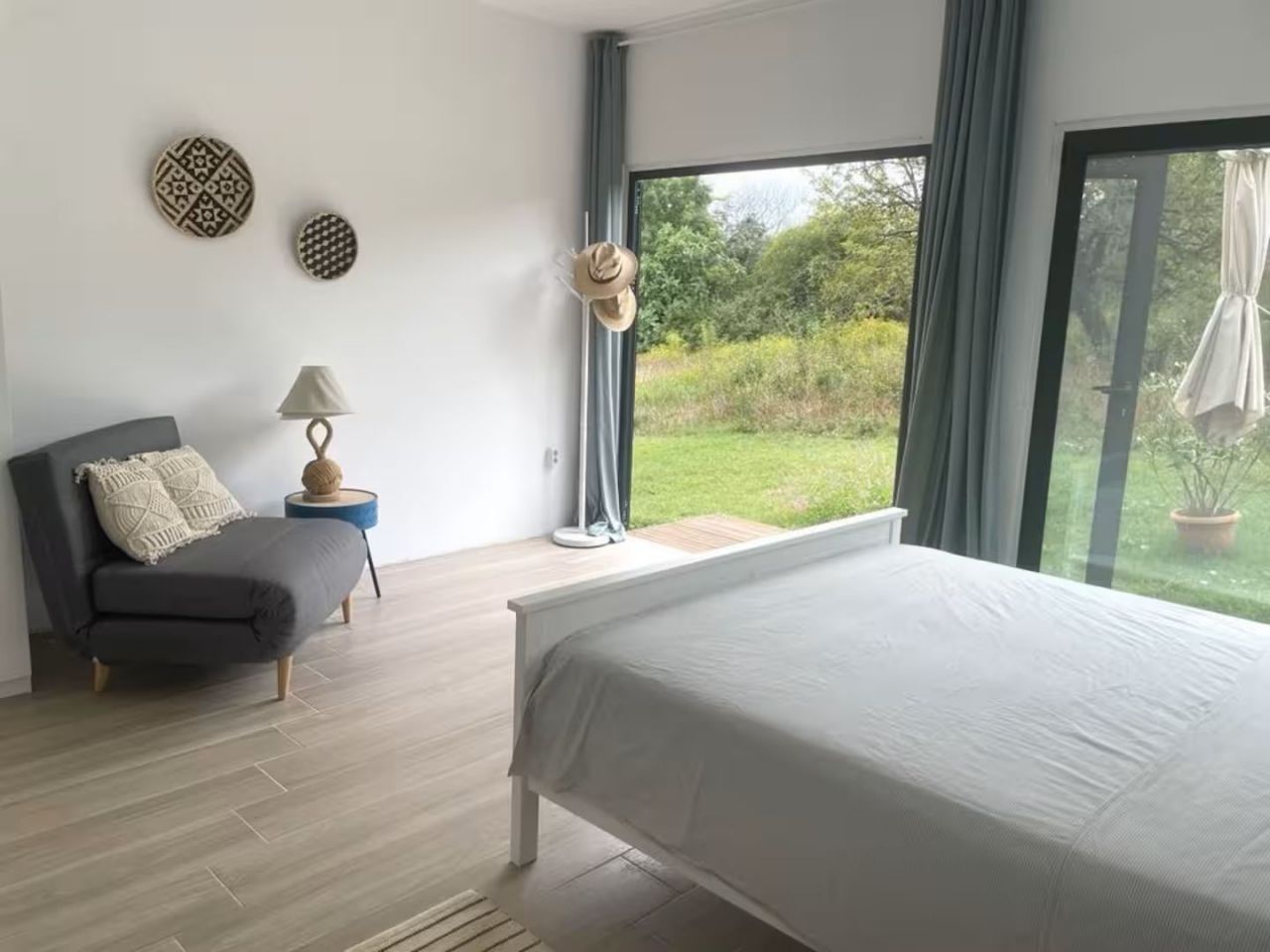 Гостите могат да използват общата всекидневна и кухня, както и външната тераса – идеална за сутрешно кафе или вечерна почивка с гледка към градината.
