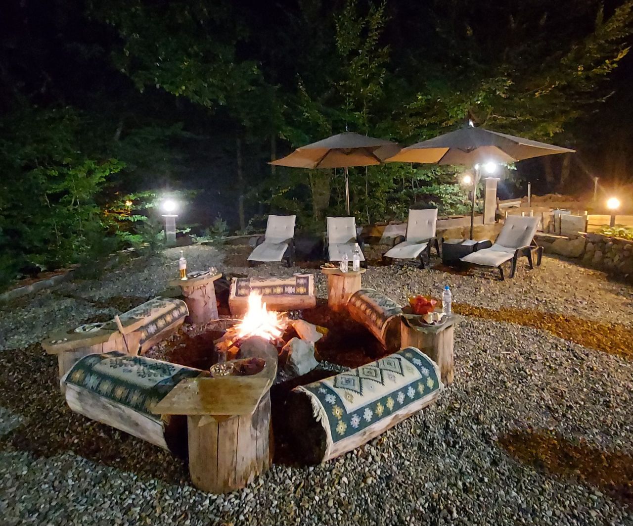 - За лятото предлагаме два големи чадъра с шезлонги и масички