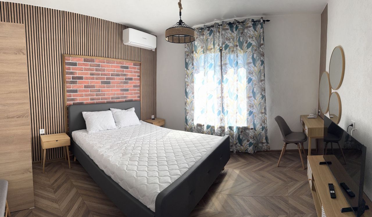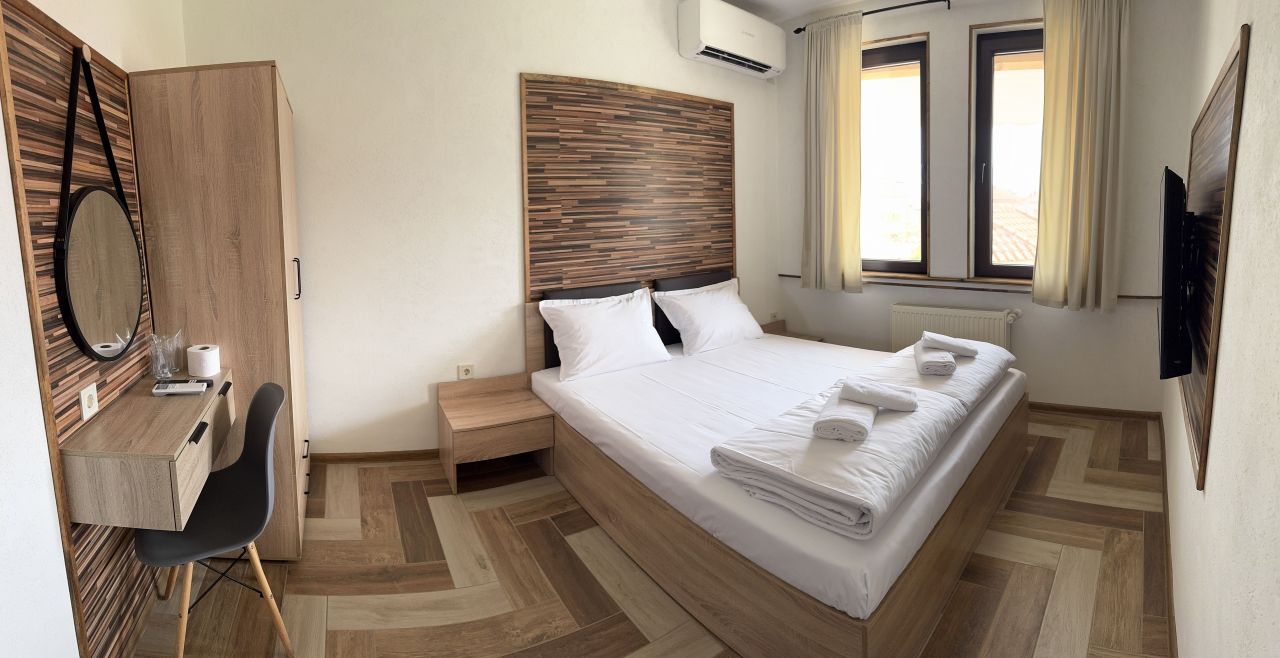 - втори етаж една самостоятелна двойна стая с баня и тоалетна, мезонет състоящ се от три двойни стаи, като едната е на трети етаж с две тераси, има две бани