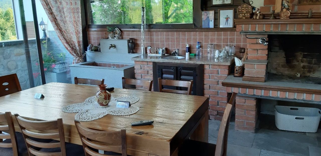 Втората постройка представлява малка самостоятелна къща, в която има спалня и санитарен възел, а третата постройка се състои от барбекю с камина, маса за 12 човека и тоалетна.