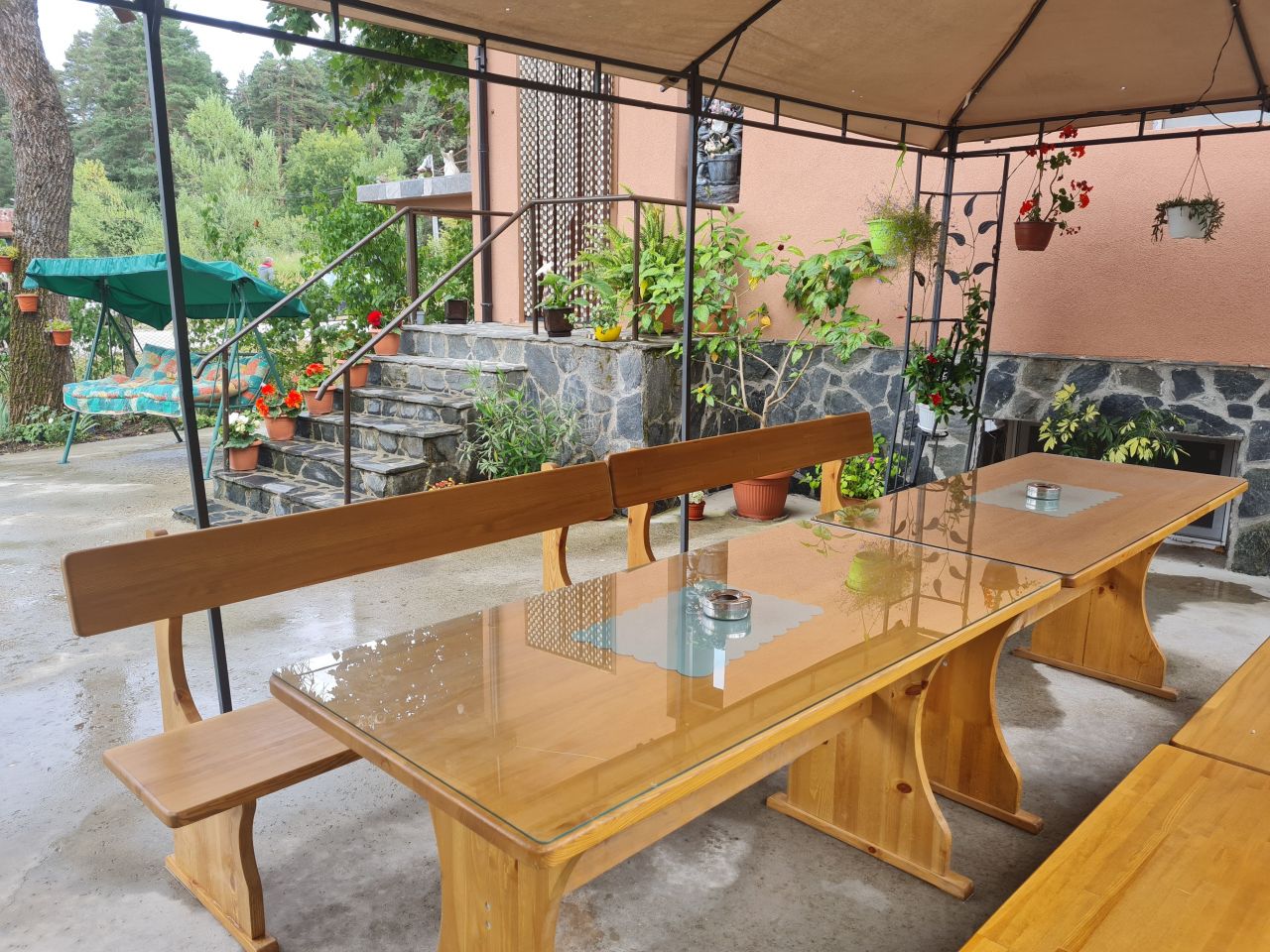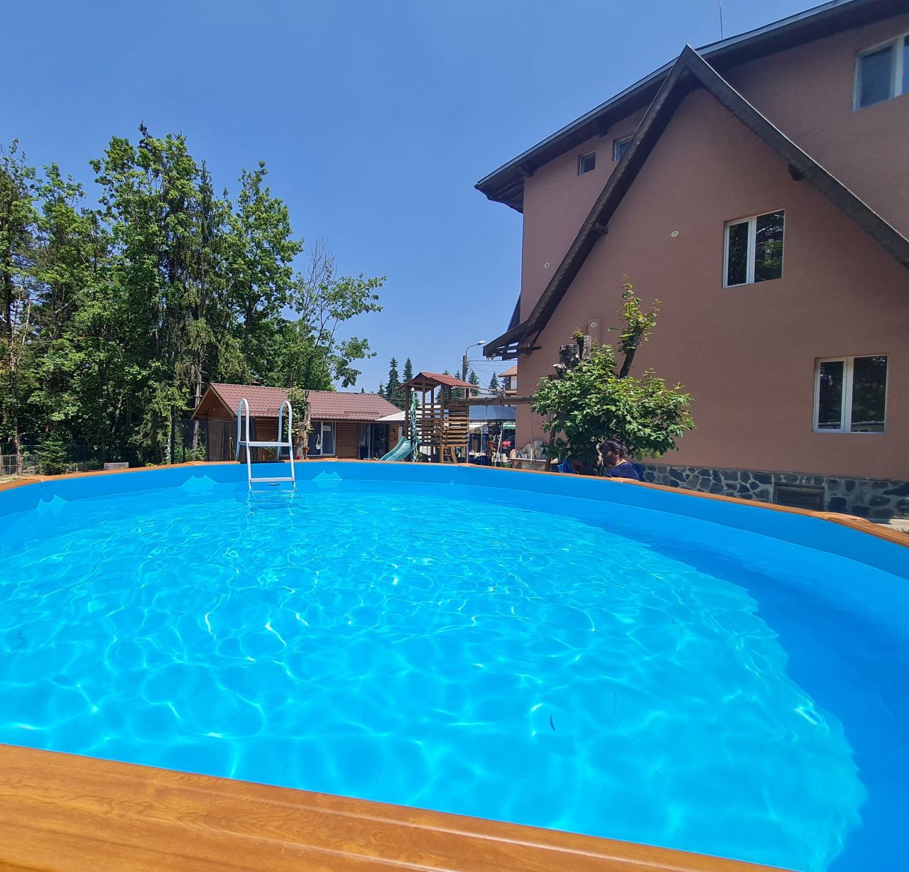 Сградите са разположени в голям напълно ограден двор, в който на разположение на гостите са кът за хранене на открито, барбекю, детски кът с люлки, пързалка, пясъчник и батут. На разположение е и топъл басейн с диаметър 5 метра и шезлонги и чадъри за всички гости.