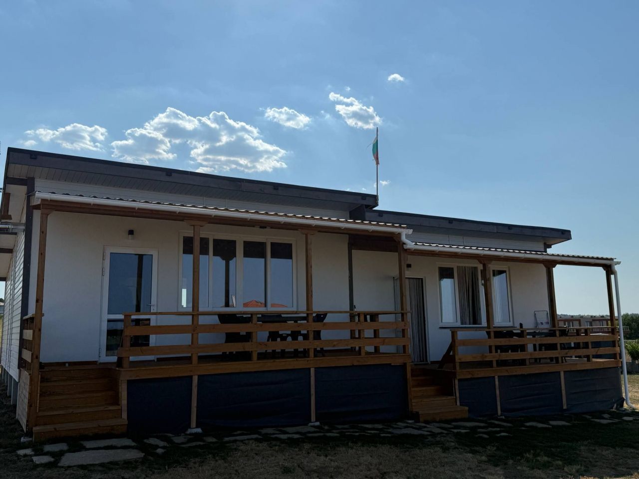 - Просторна веранда с маса за закуска и вечеря на открито