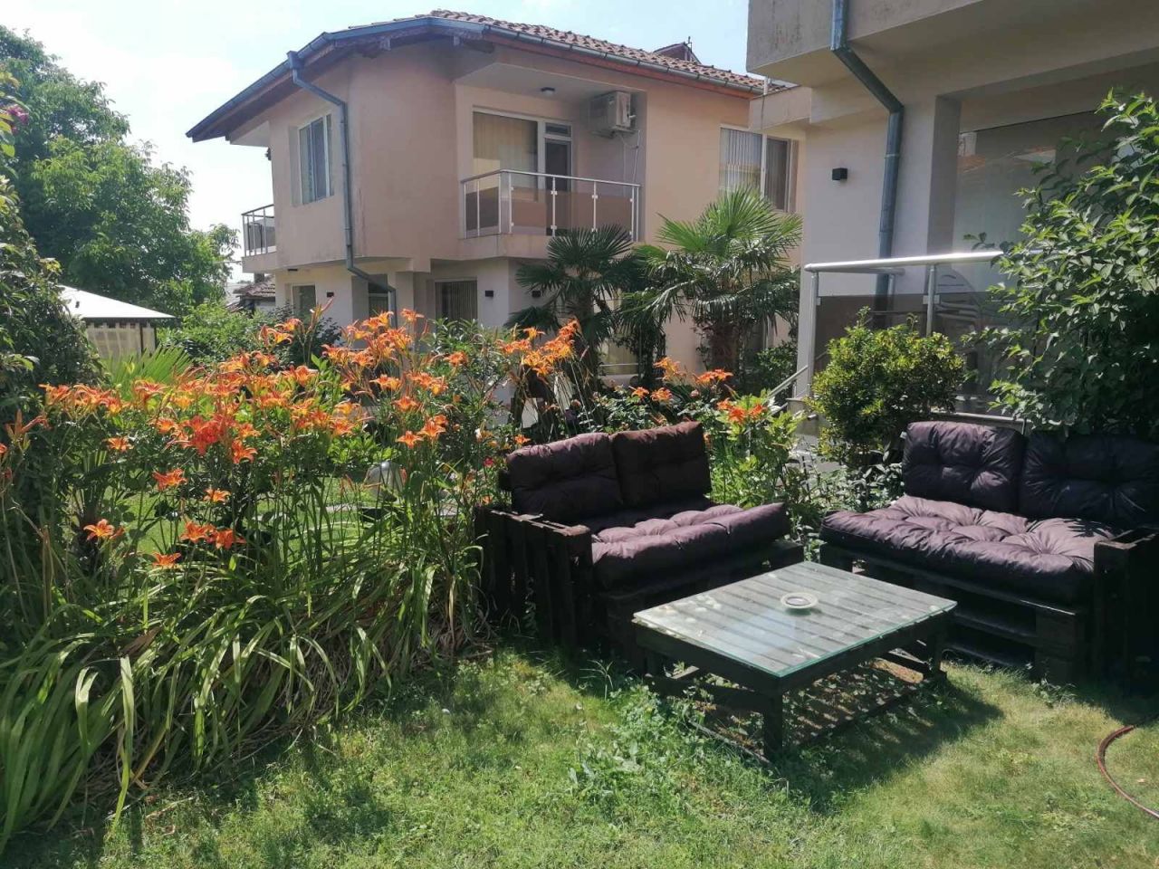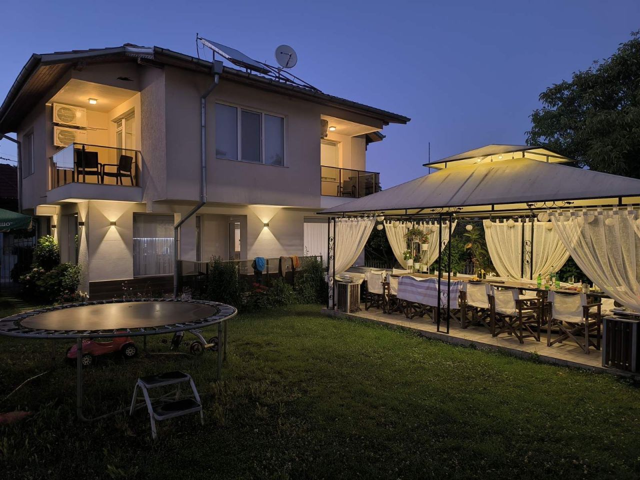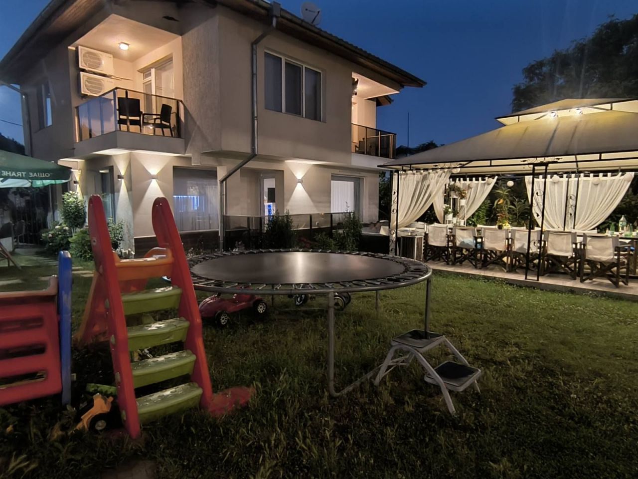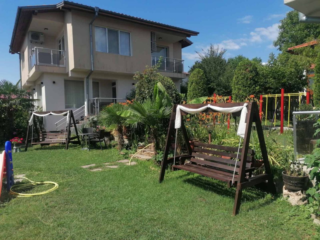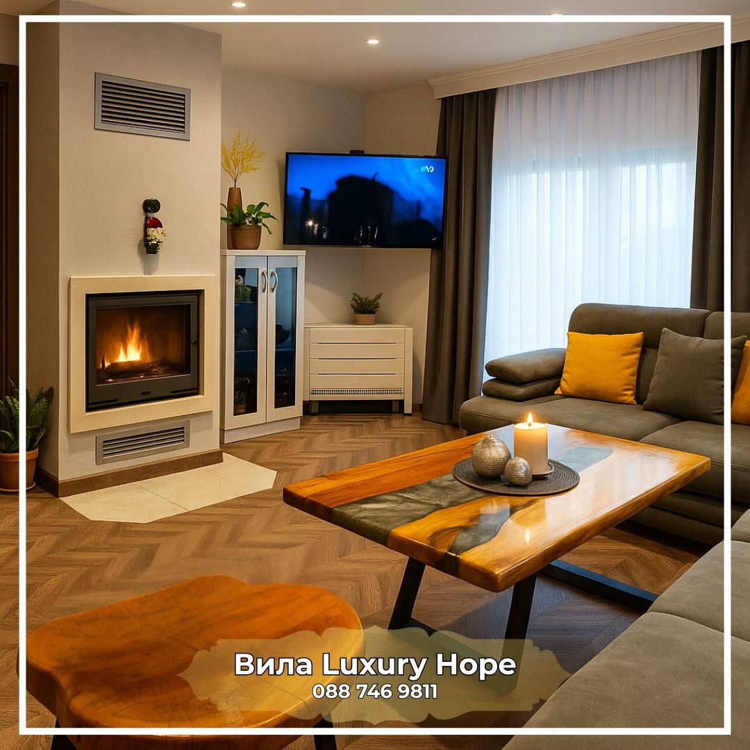 Вили Надежда предлагат: Самостоятелна вила с паркинг 10+1 легла, със самостоятелен санитарен възел, кухня с необходимото кухненско оборудване, телевизор, камина и парно отопление, лятна градина с басейн и барбекю.