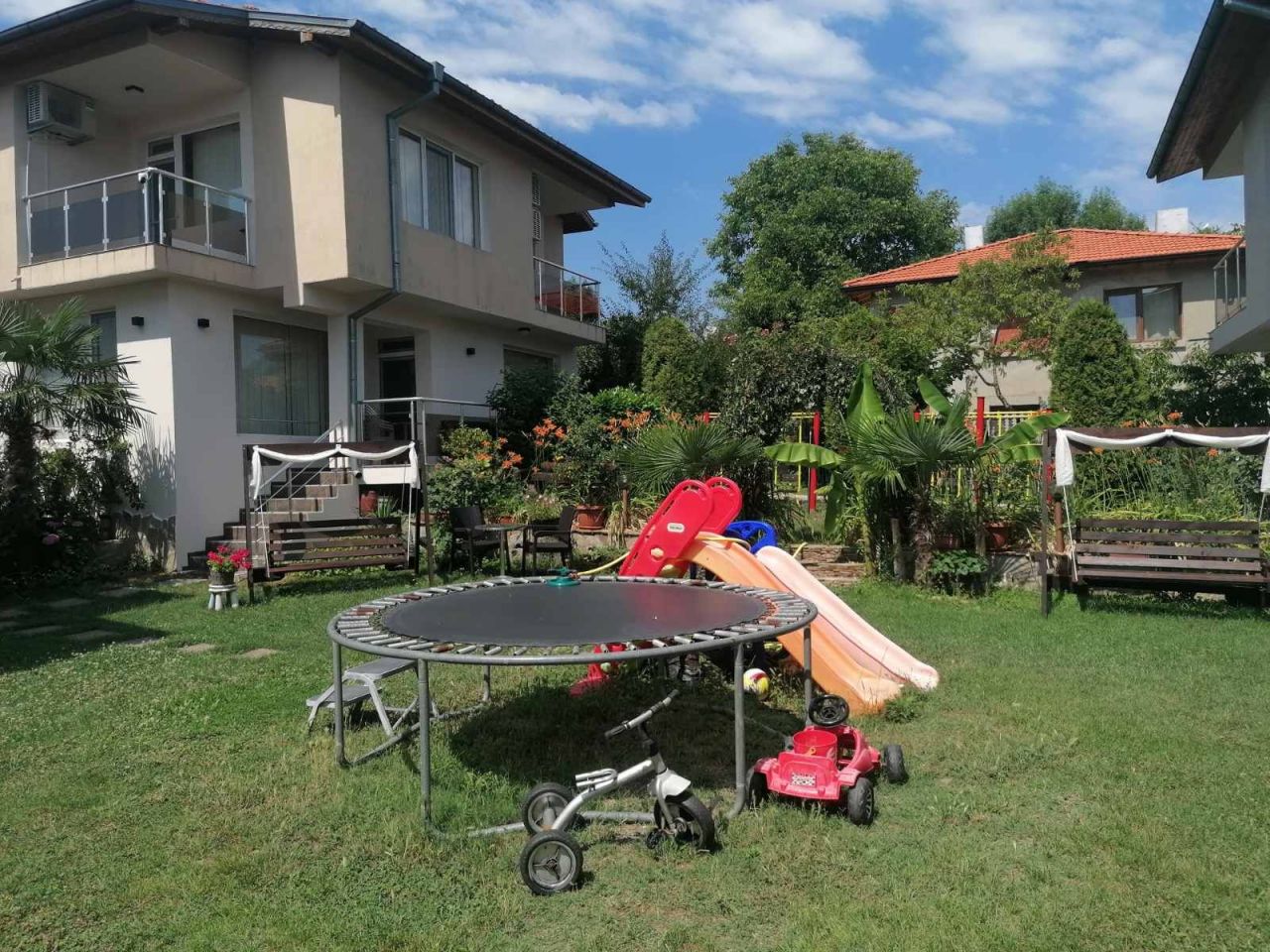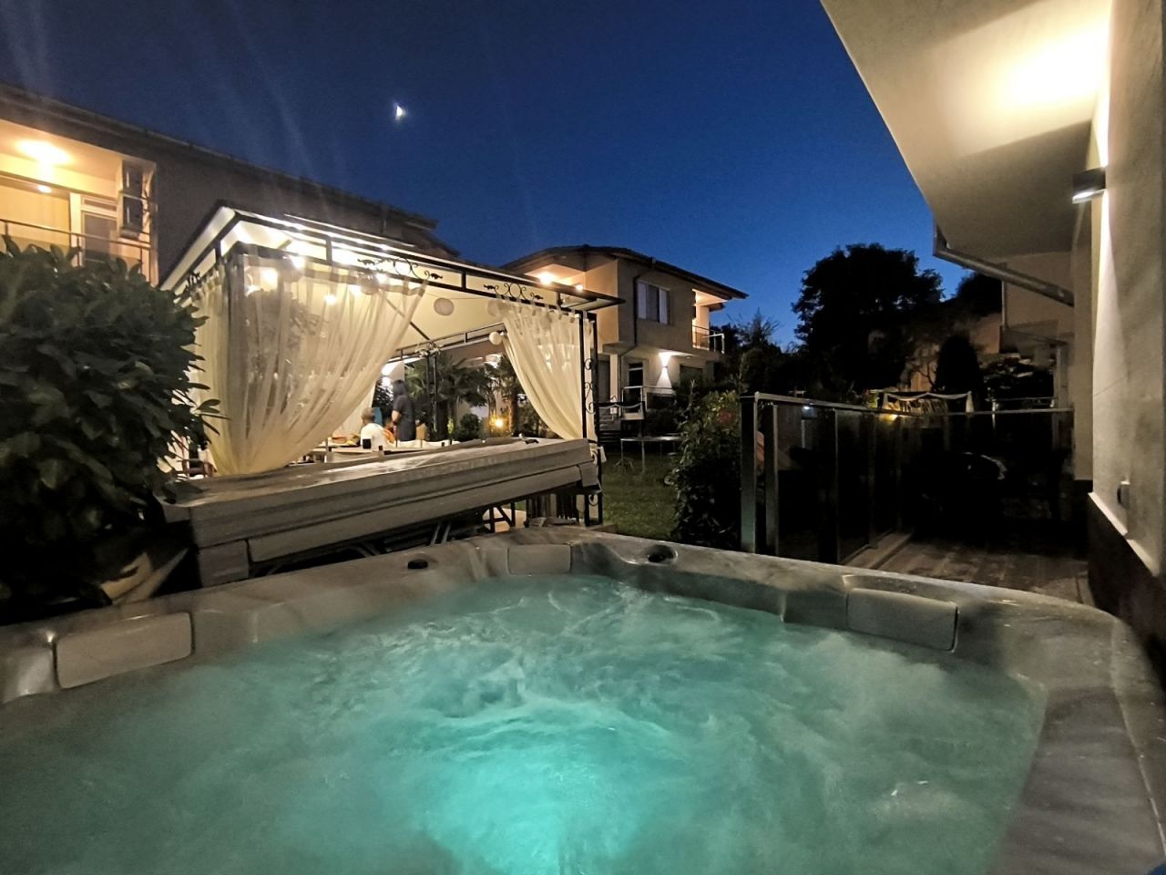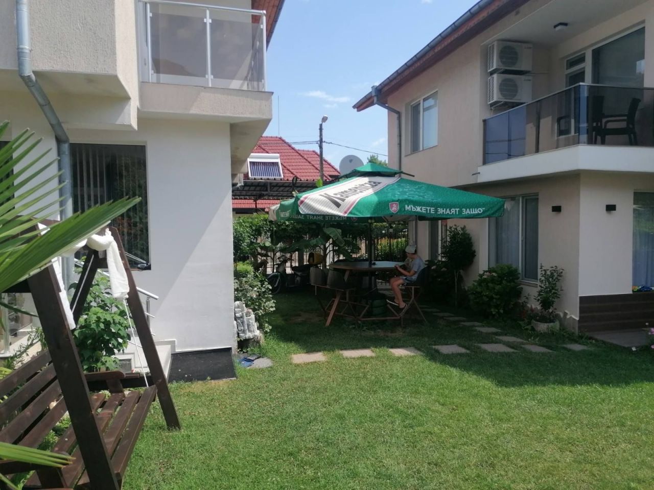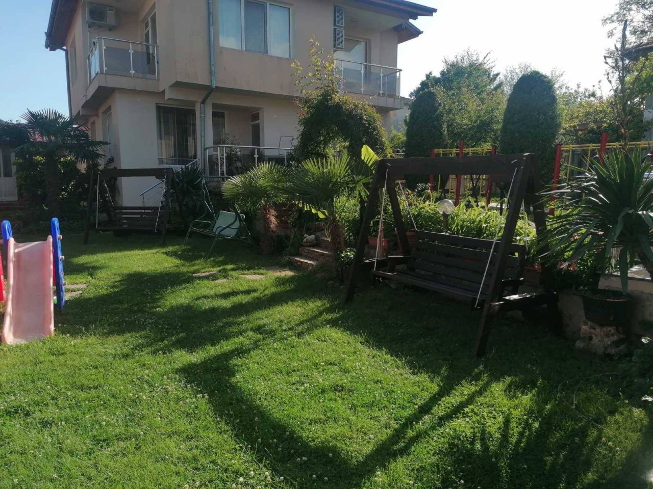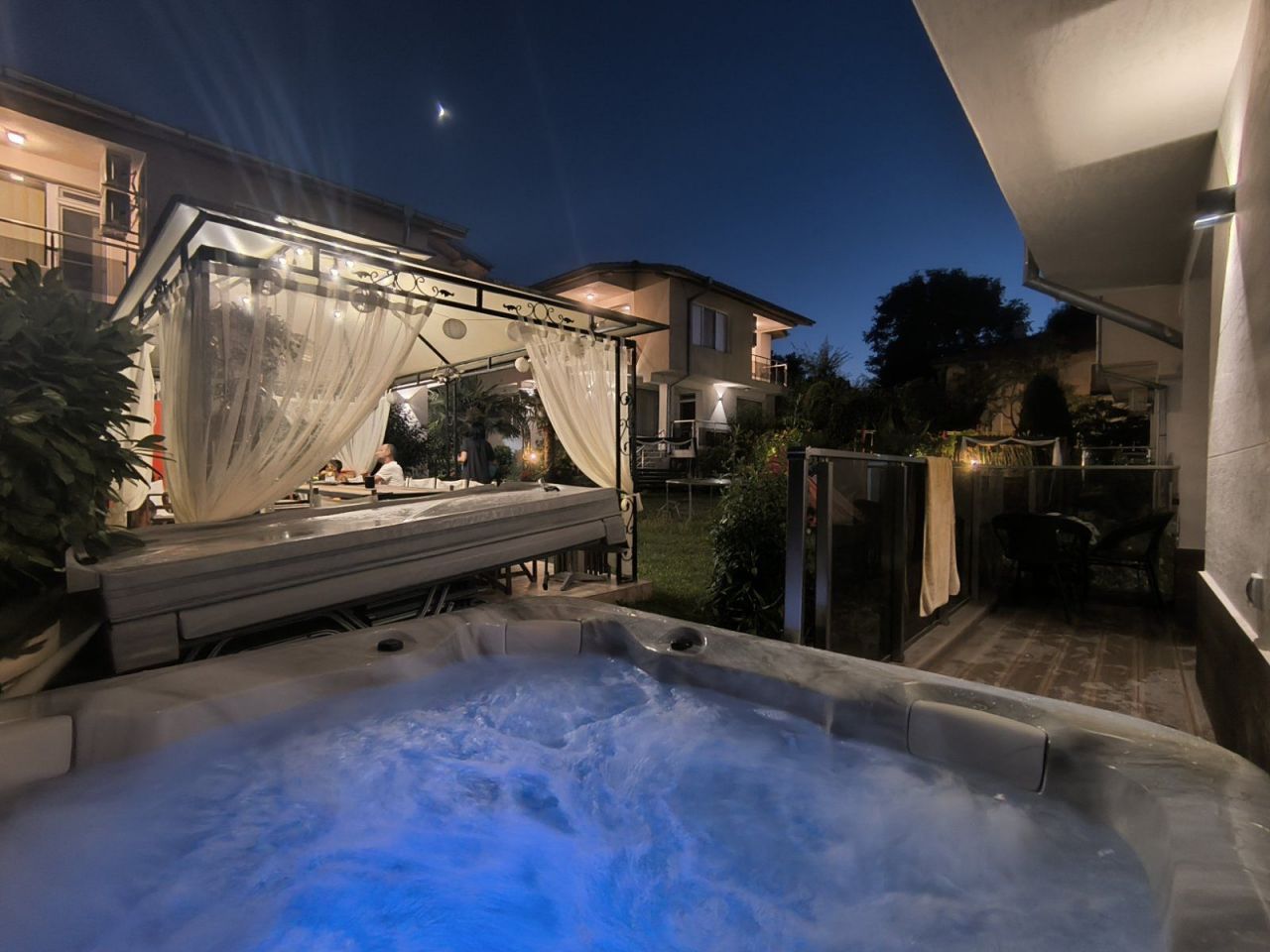 Вили Надежда предлагат: Самостоятелна вила с паркинг 10+1 легла, със самостоятелен санитарен възел, кухня с необходимото кухненско оборудване, телевизор, камина и парно отопление, лятна градина с басейн и барбекю.