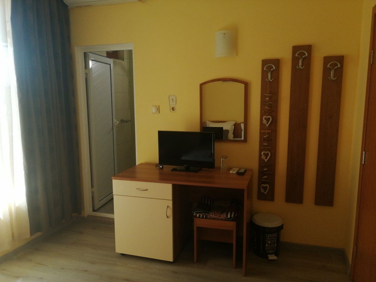 Дневната се състои от: две единични легла, трапезарна маса със столове, холна секция и ТВ;