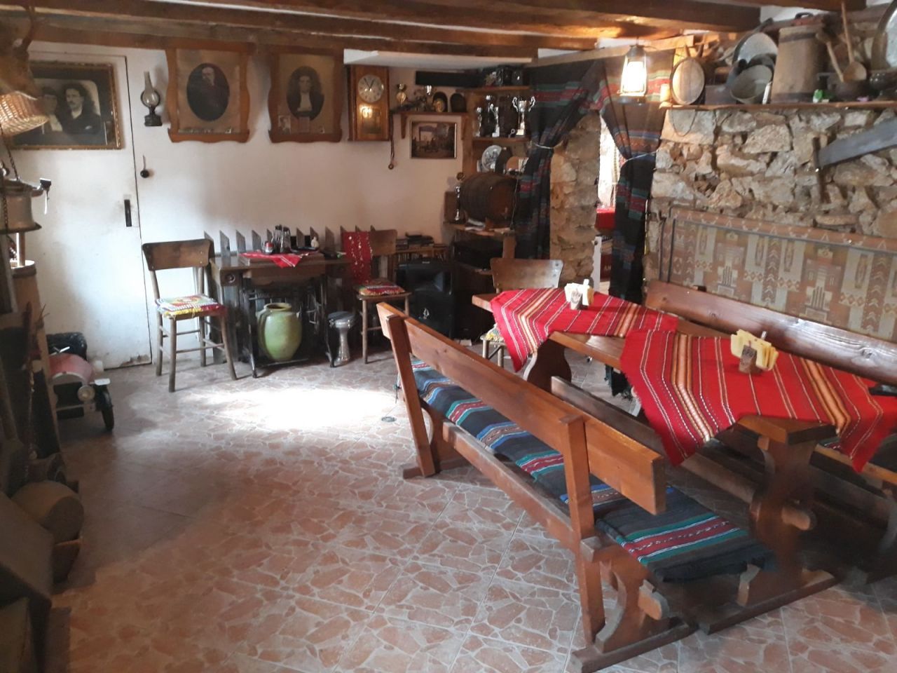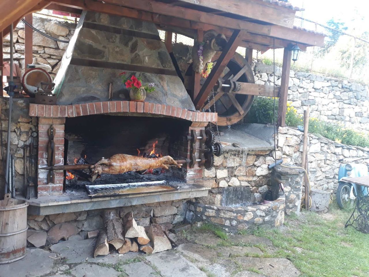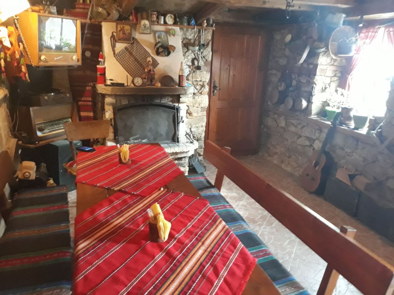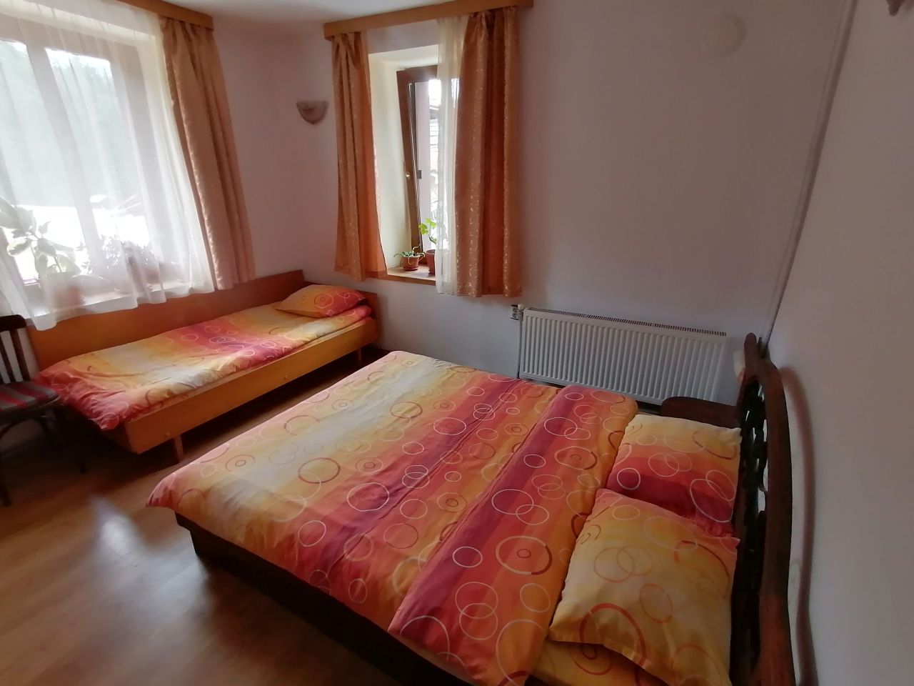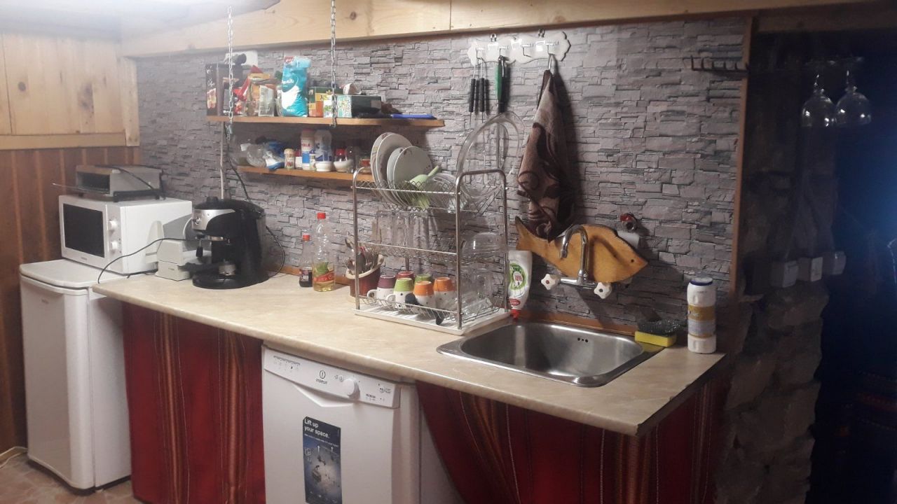 На първия етаж се намира родопска механа с камина. Към нея има обособен кухненски бокс, оборудван с хладилник, електрическа готварска печка, кафе машина и микровълнова печка. Идеално място за незабравим купон и забавления! Стаите, разположени на втория и третия етаж, са оборудвани с кабелна телевизия, интернет и всяка от тях си има самостоятелен санитарен възел.