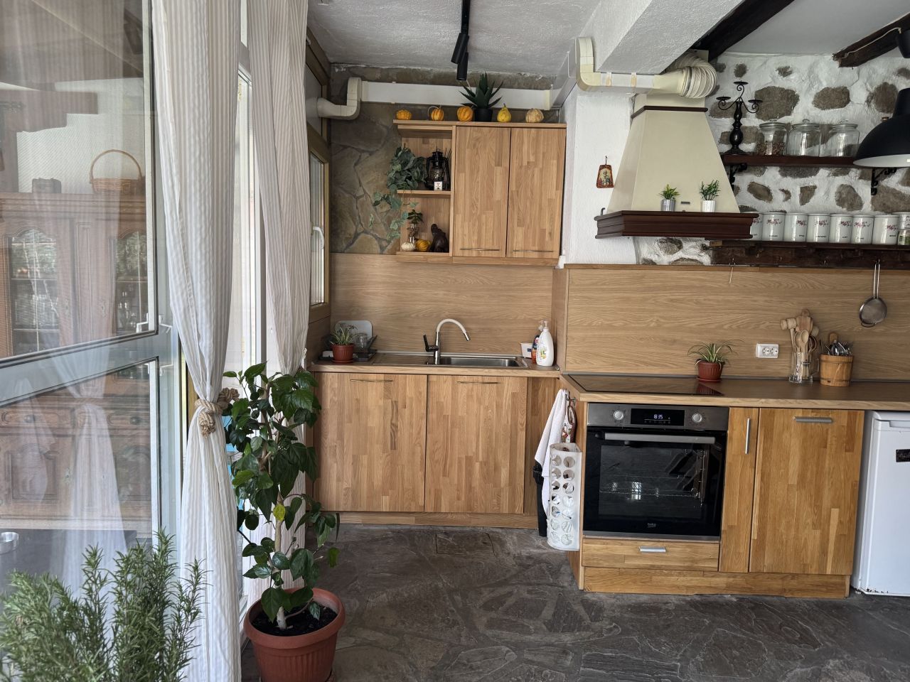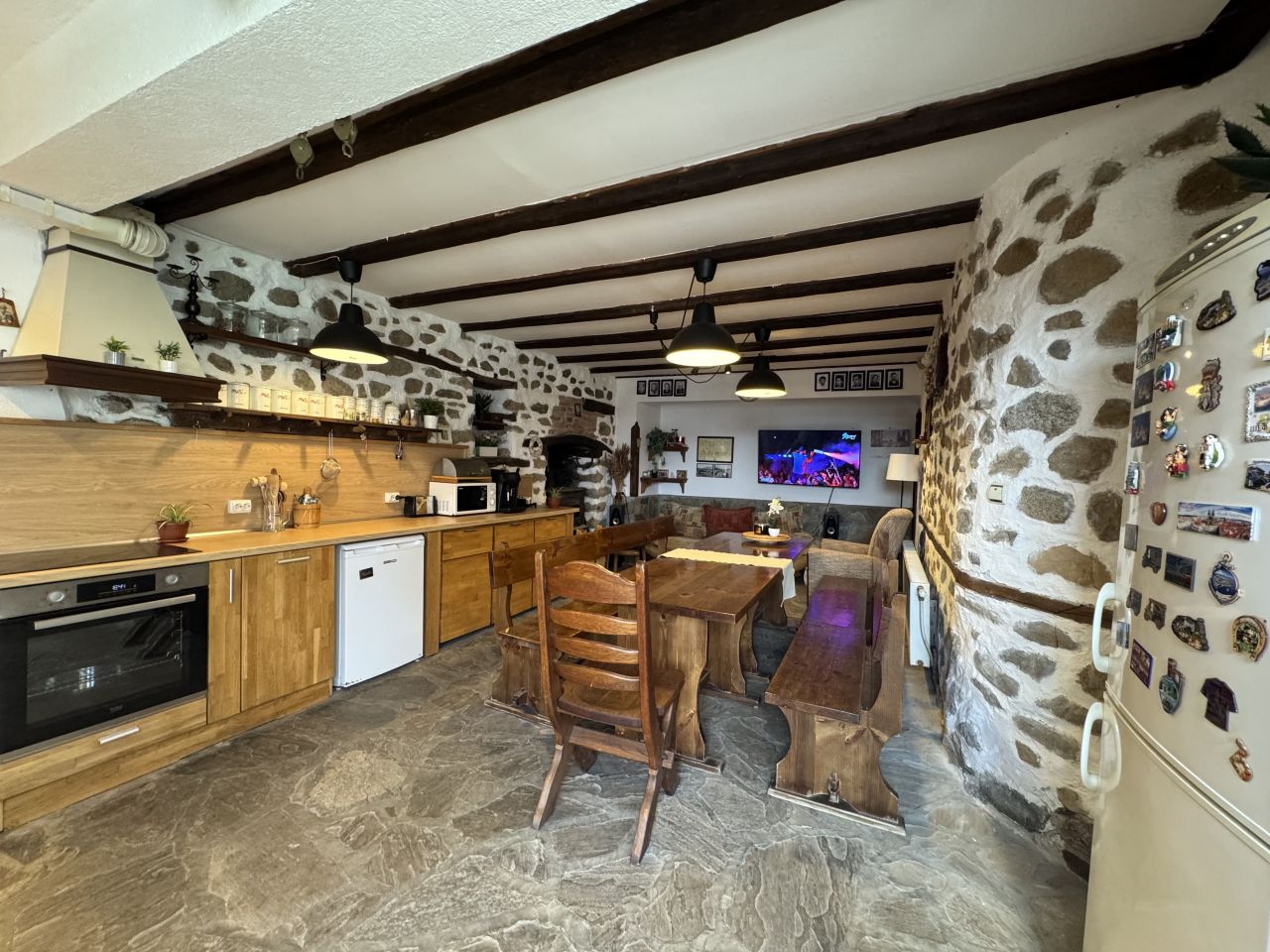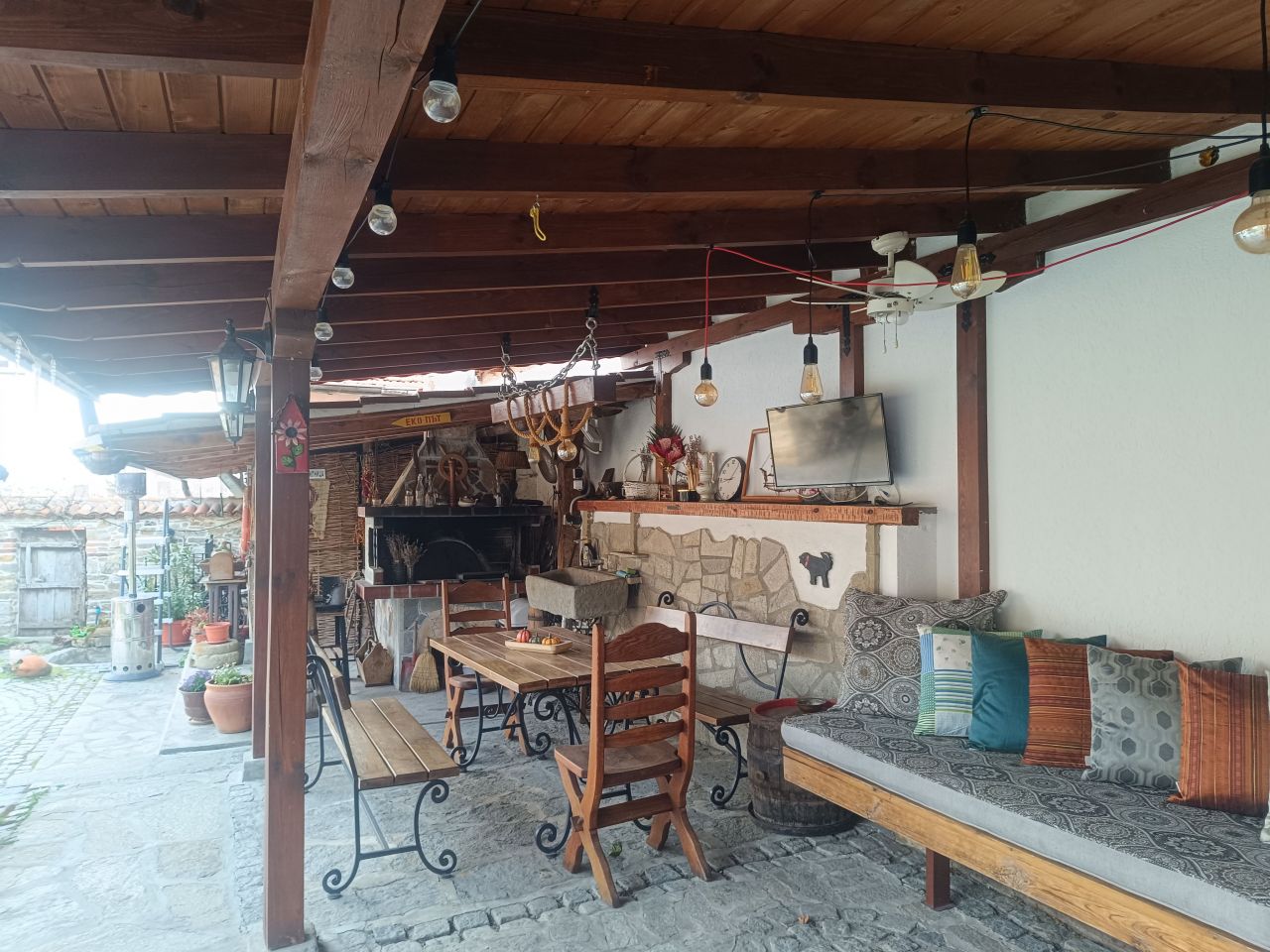 Трапезарията е за около 12 човека. Уют създава голямата камина със старинно огнище, оборудвано със скара.