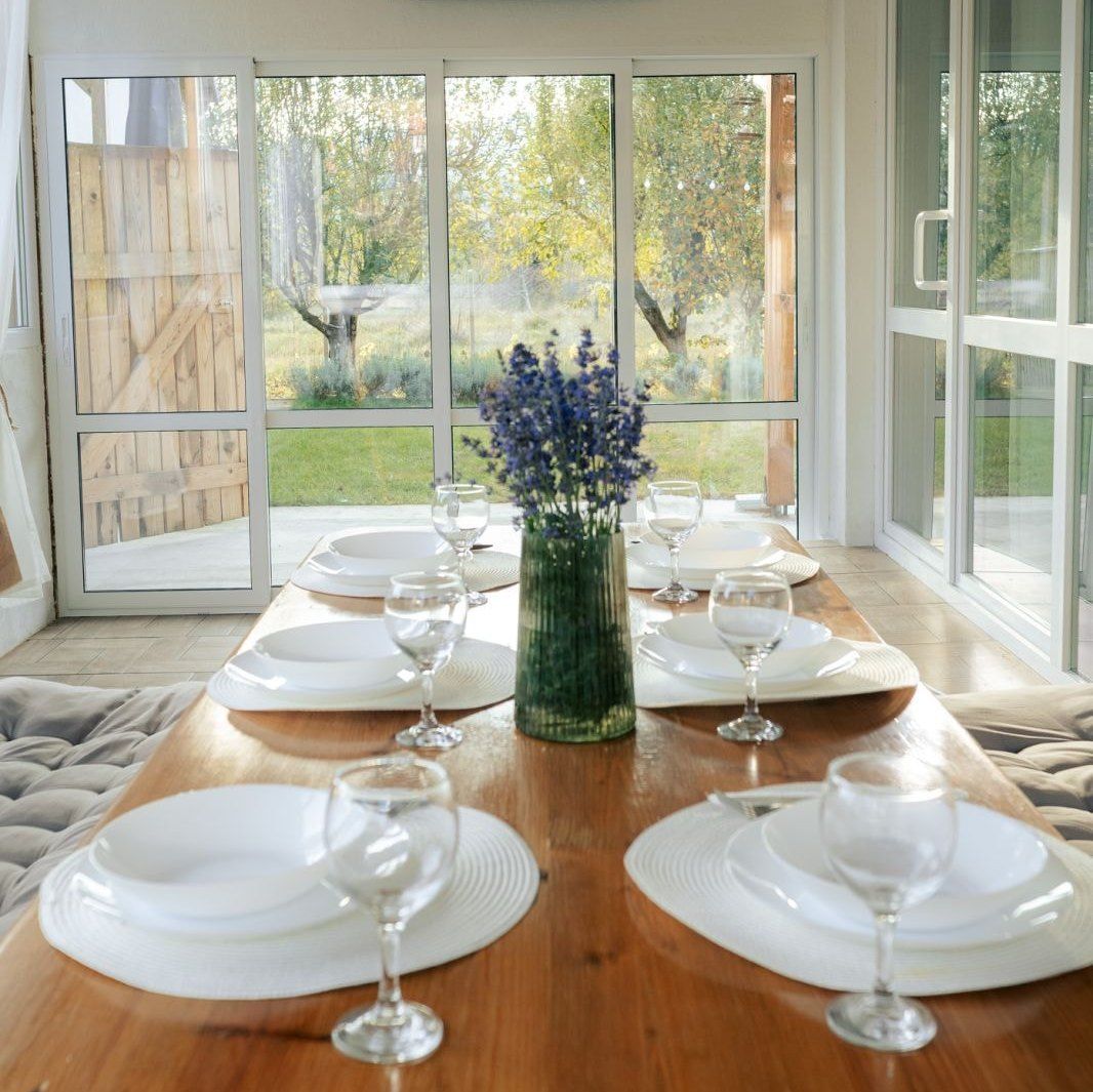 Къщата разполага с трапезария с голяма маса, подходяща за общи вечери и празненства.