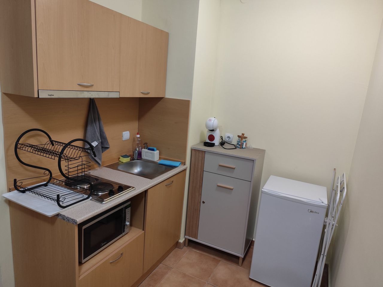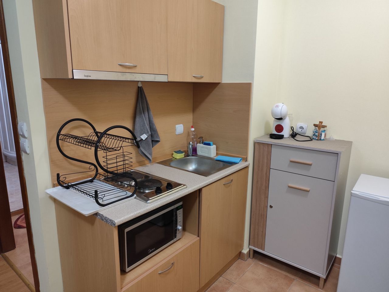 Апартаментът се състои от входно антре, всекидневна с кухненски бокс, спалня, тераса, баня и тоалетна.